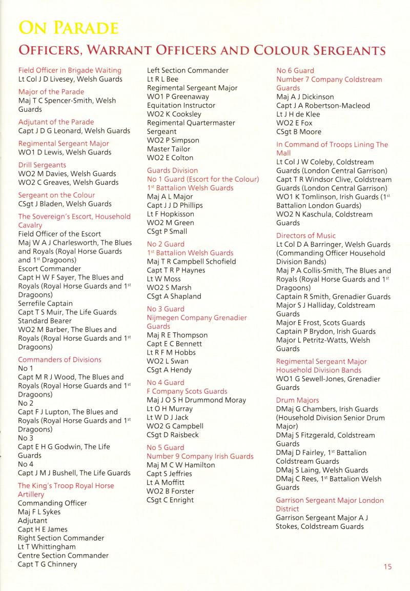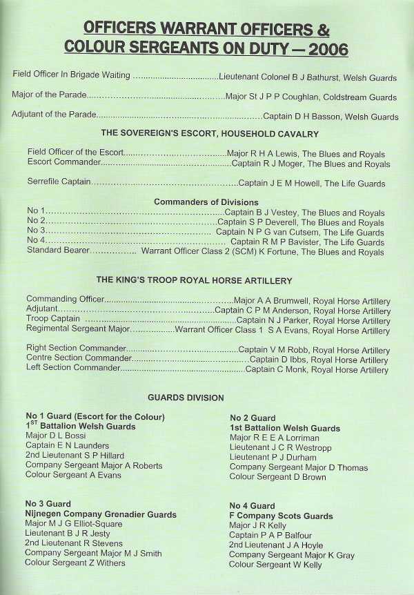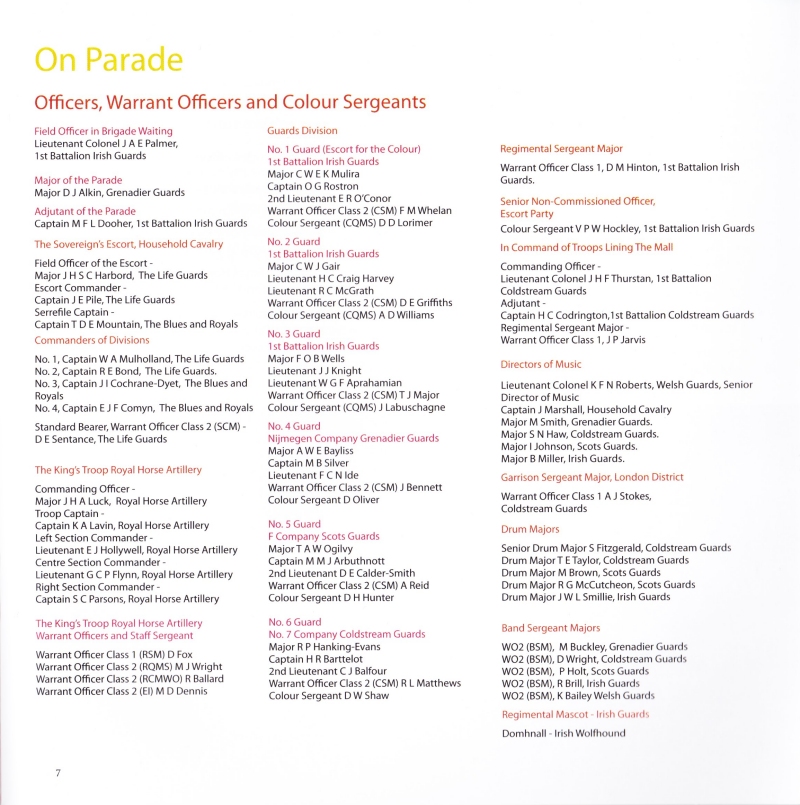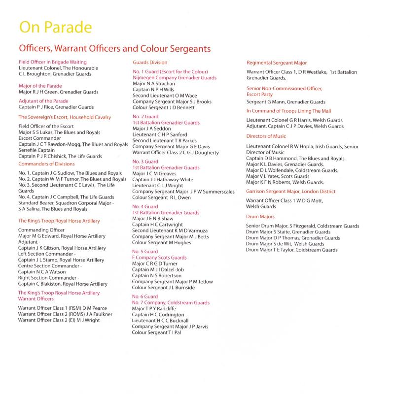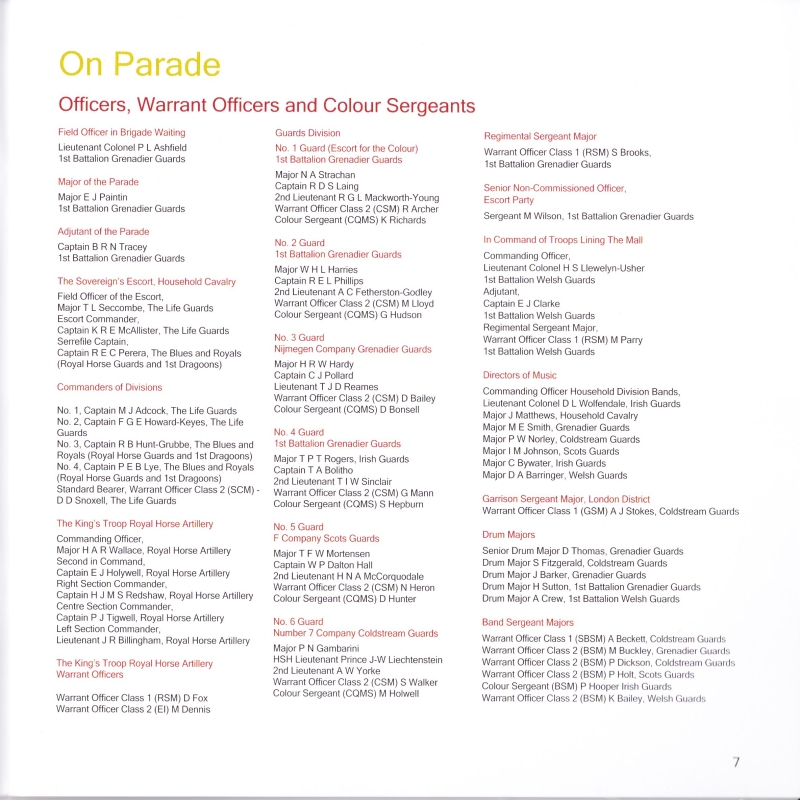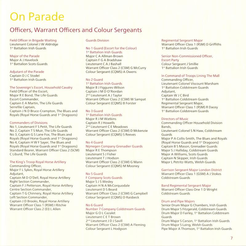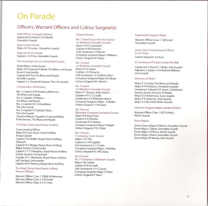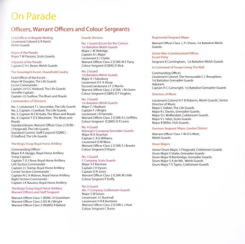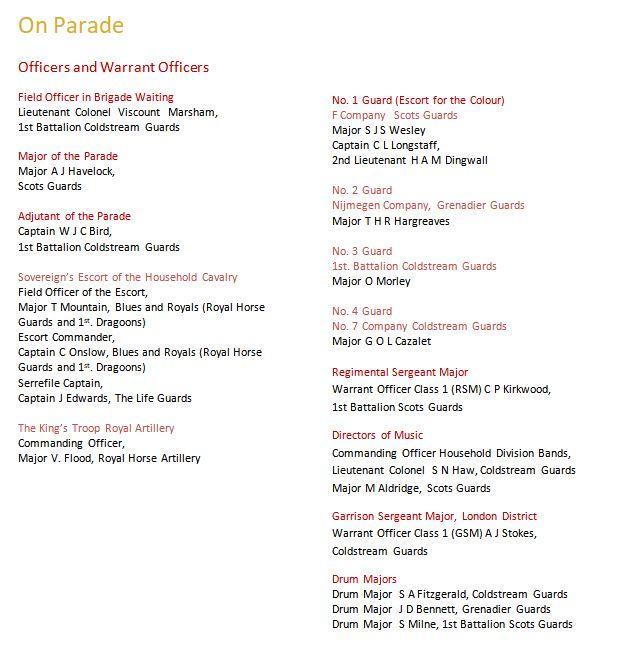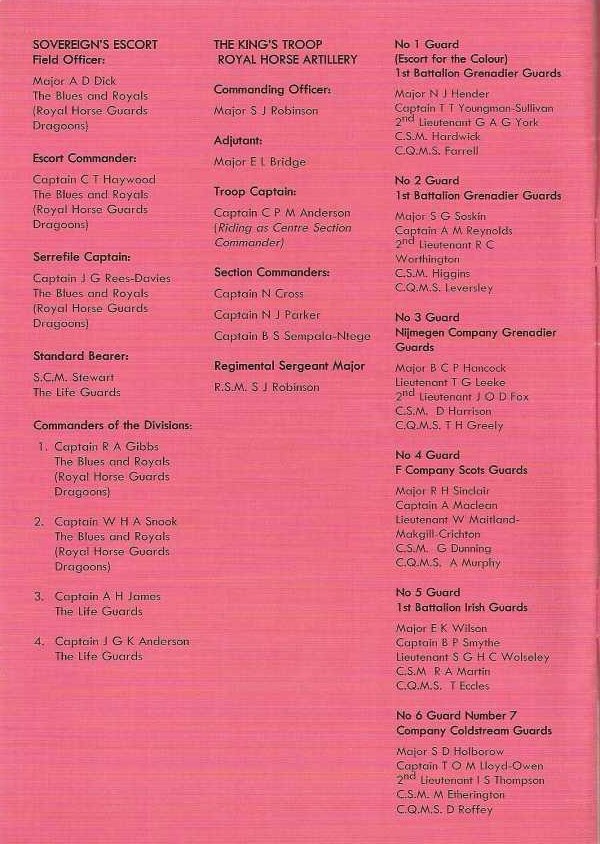 from the Sovereign's Birthday Parades compiled by Colin Dean.