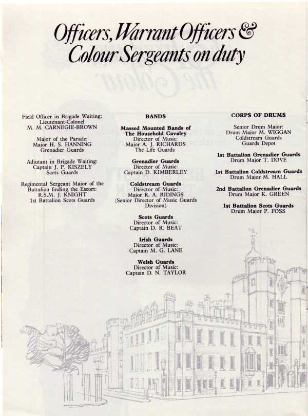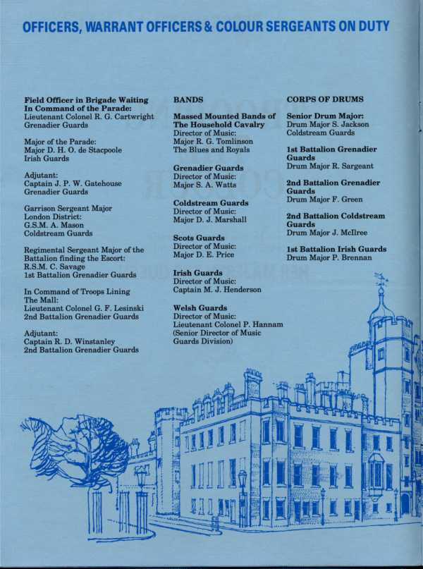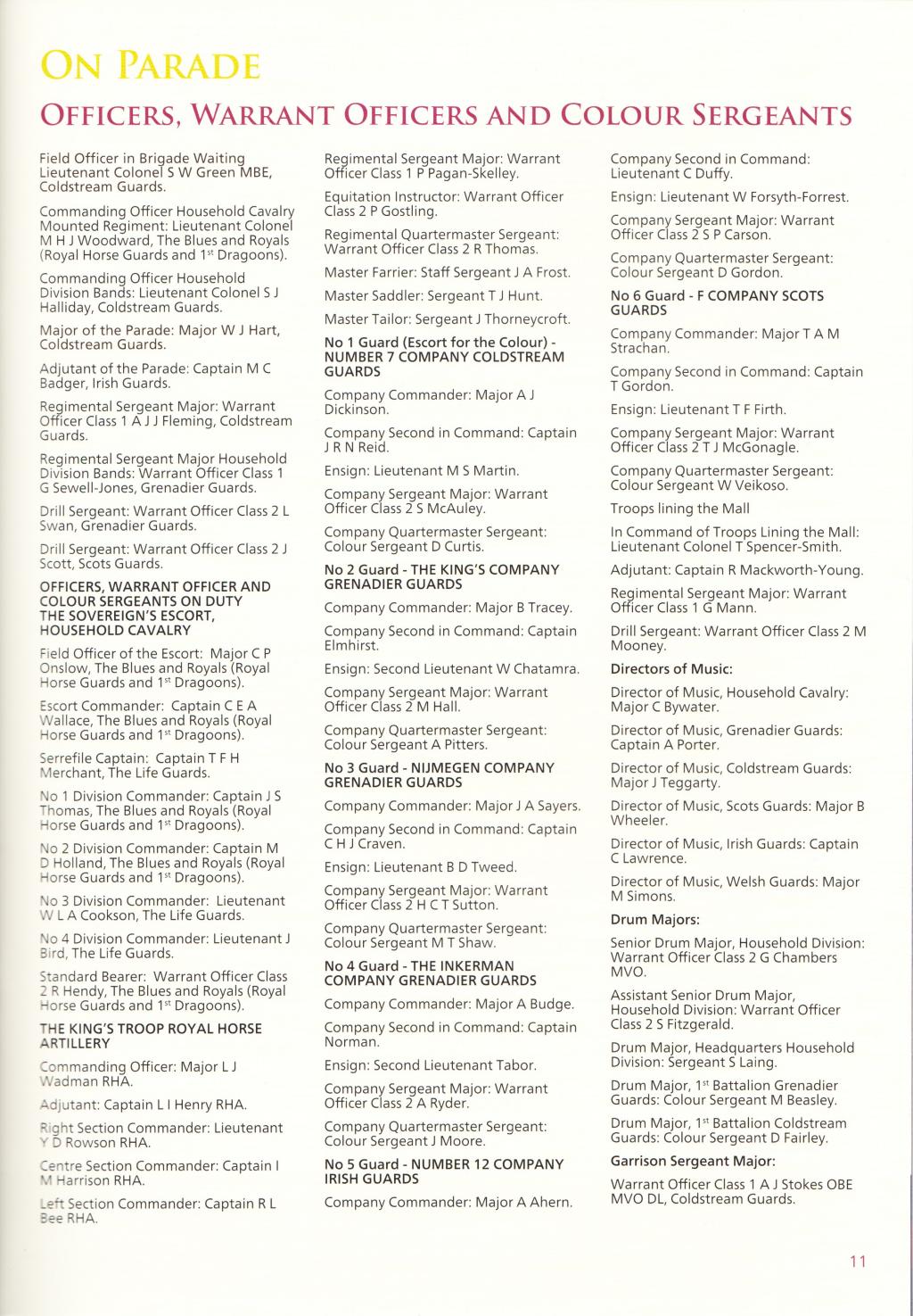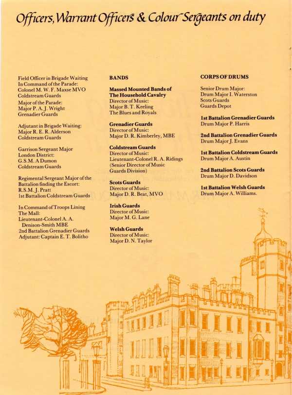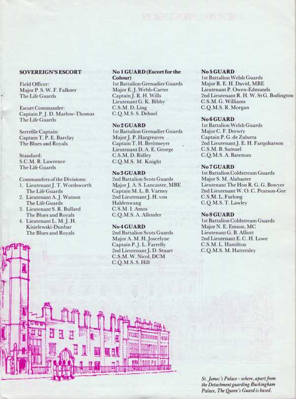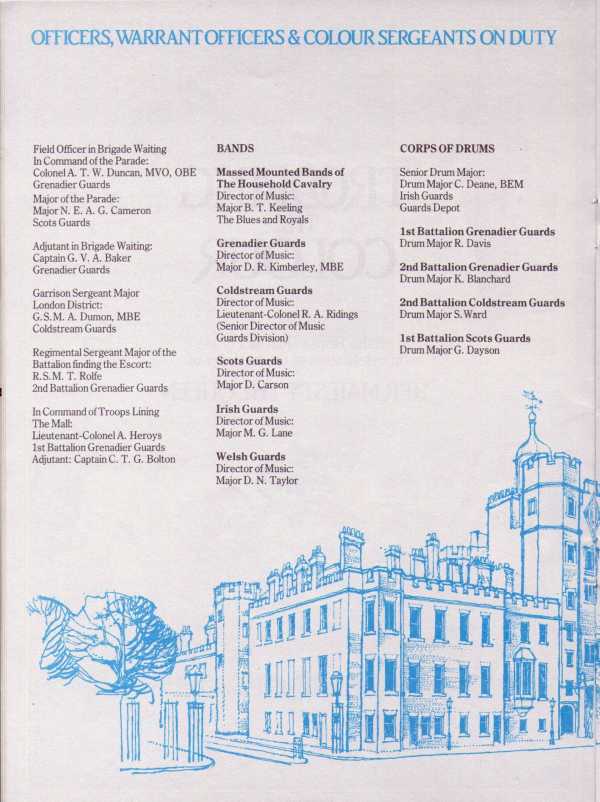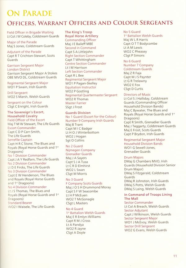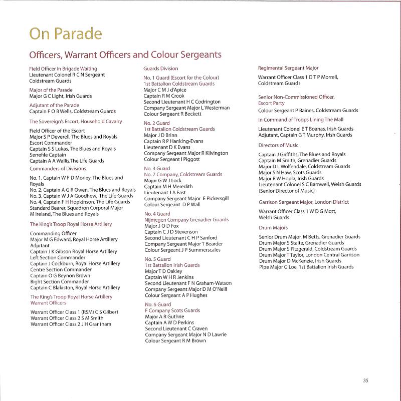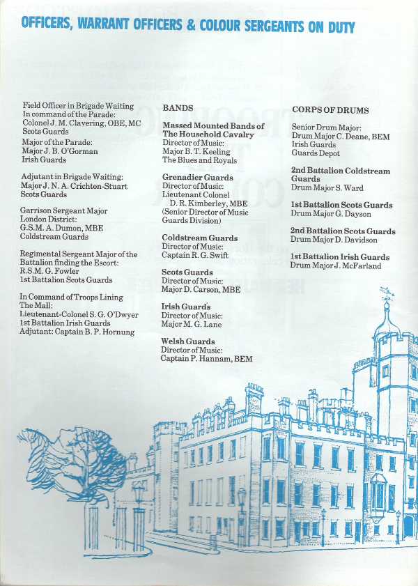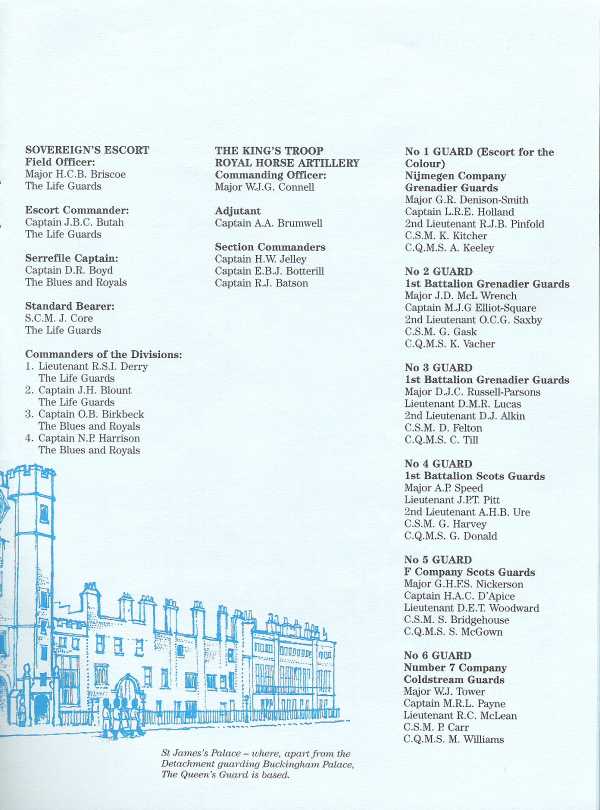 from the Sovereign's Birthday Parades compiled by Colin Dean.