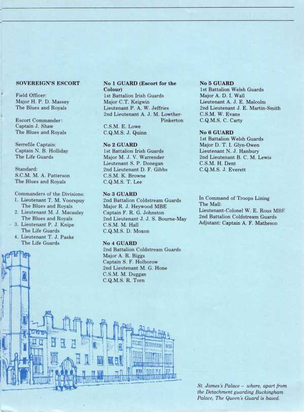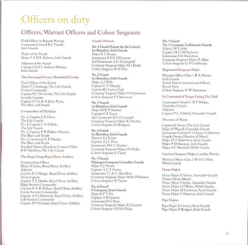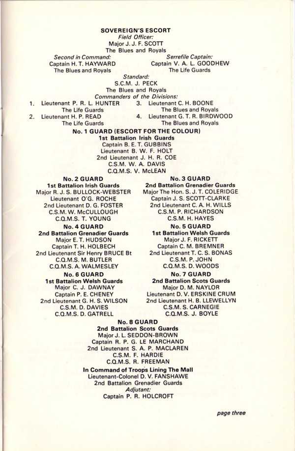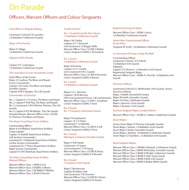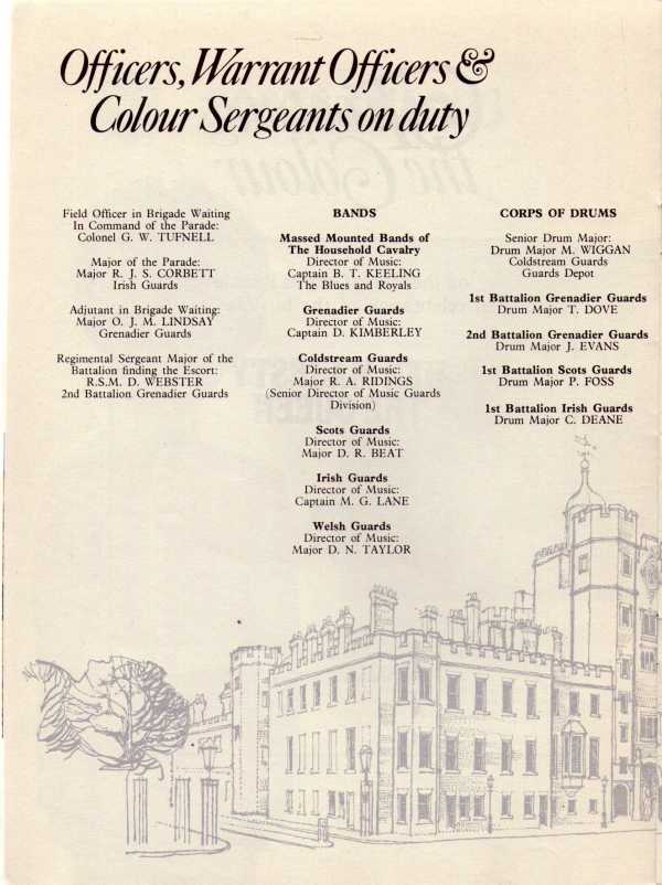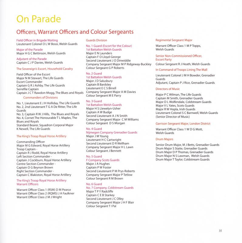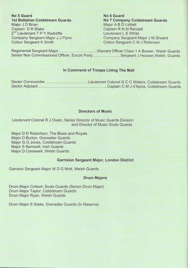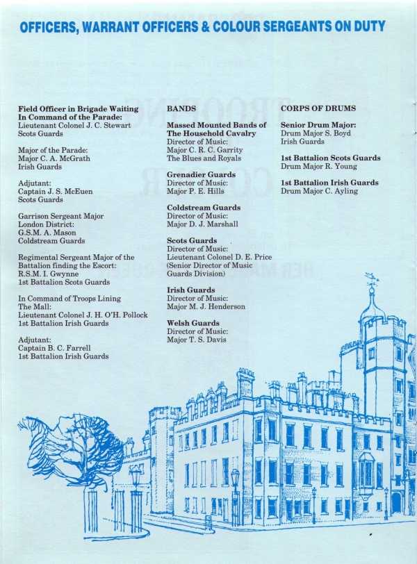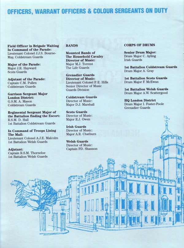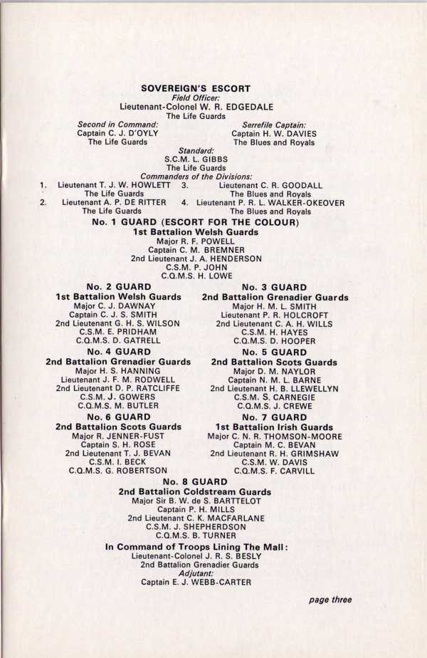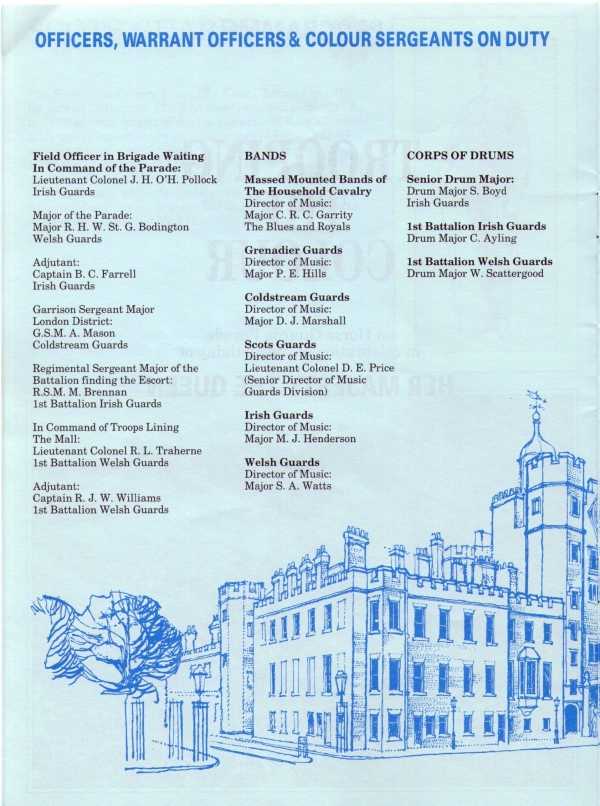 from the Sovereign's Birthday Parades compiled by Colin Dean.