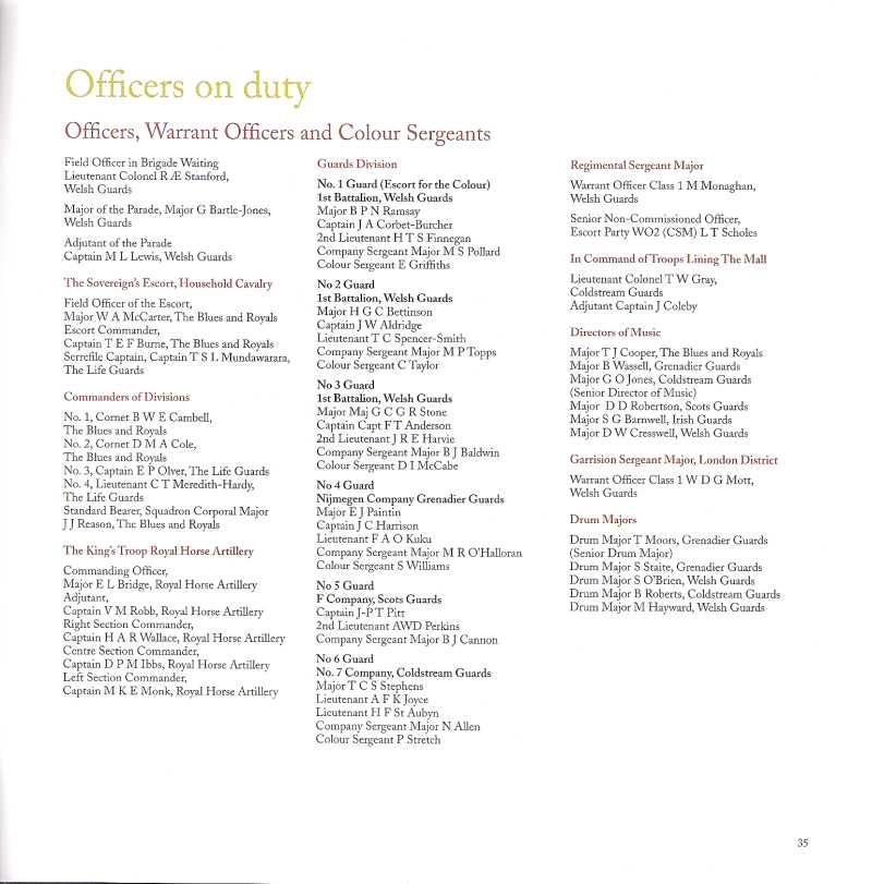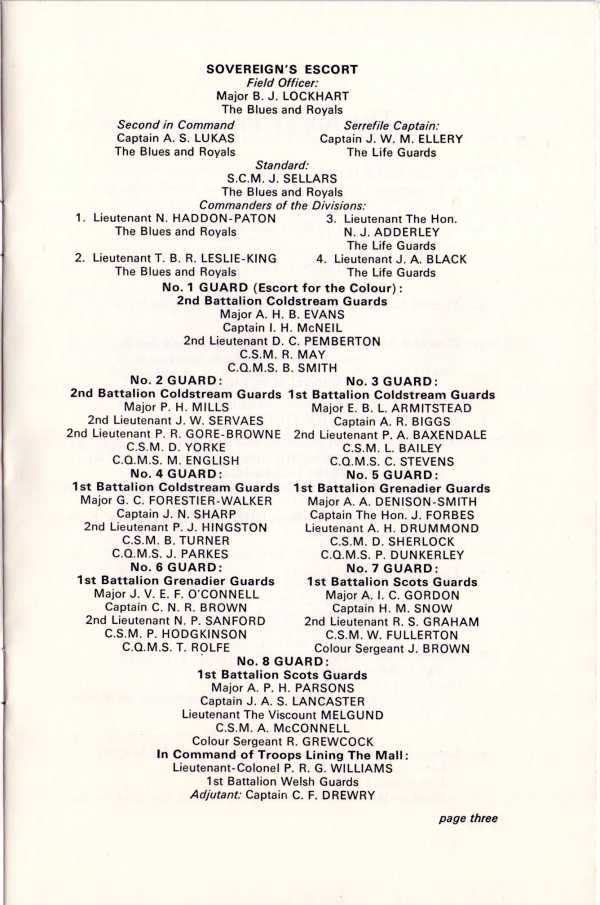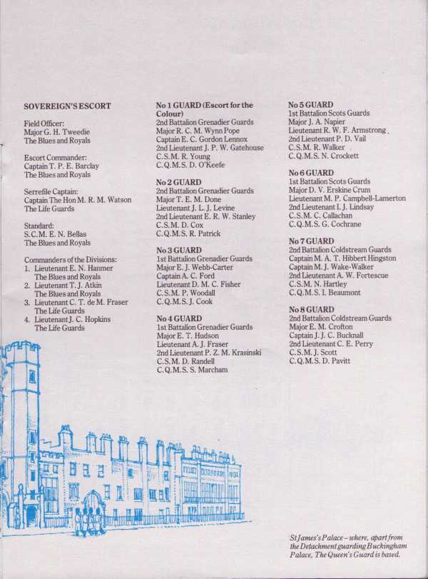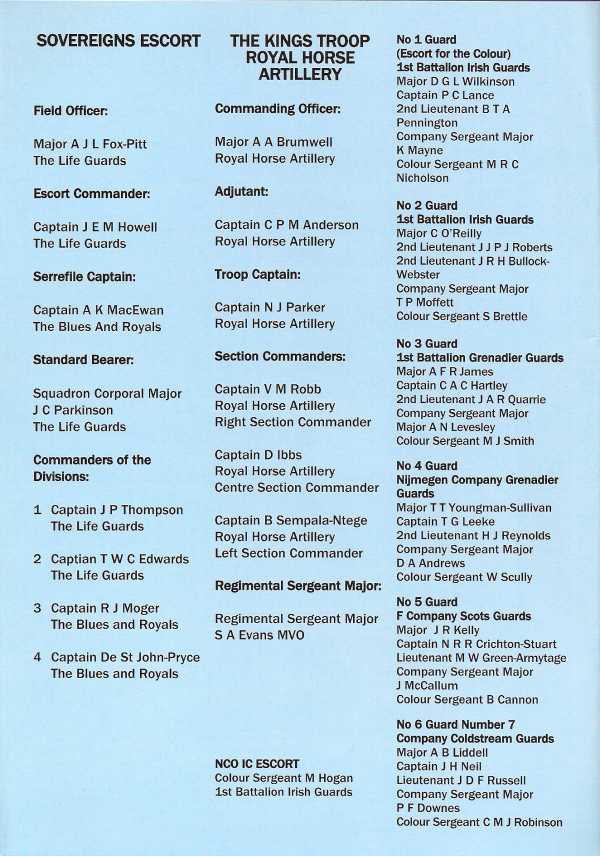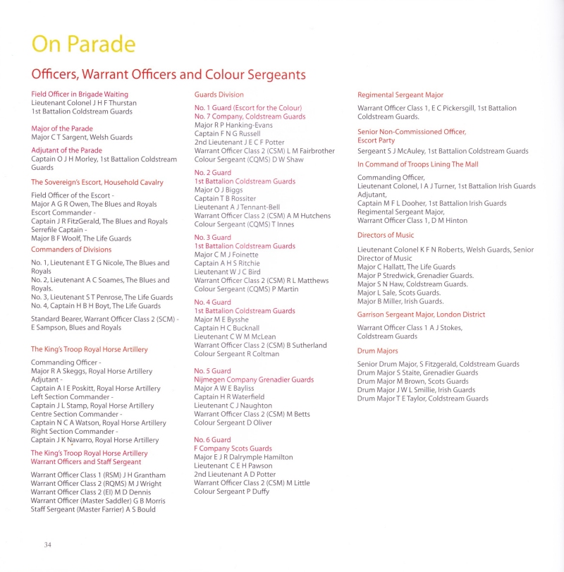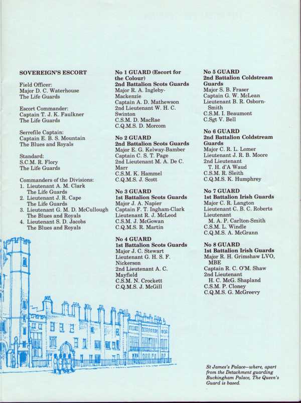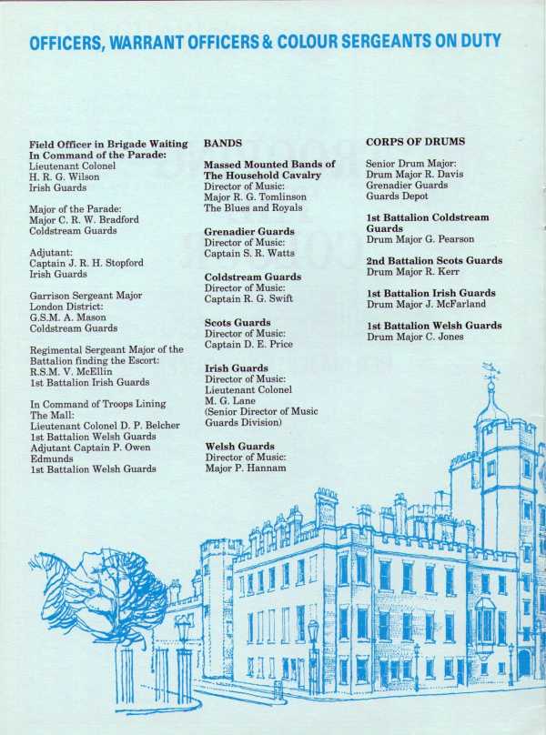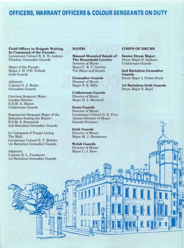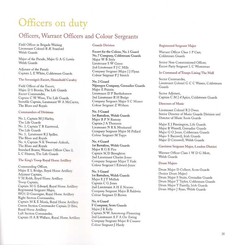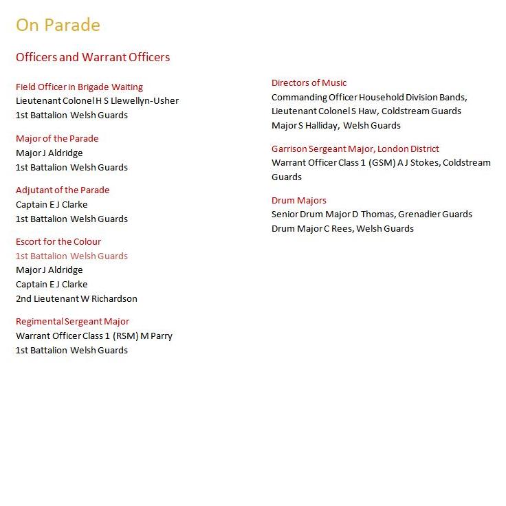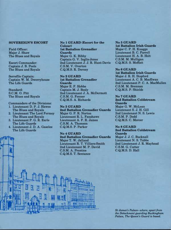 from the Sovereign's Birthday Parades compiled by Colin Dean.
