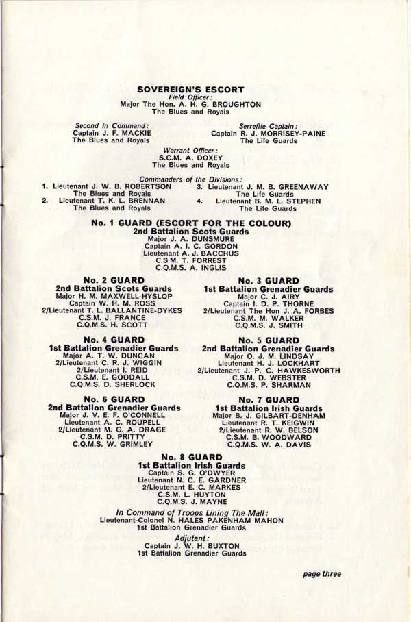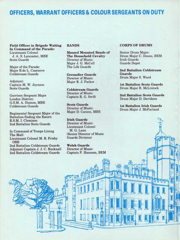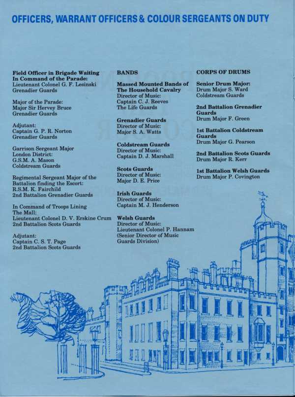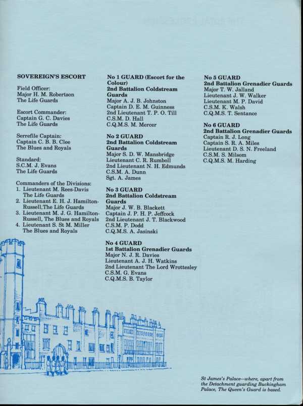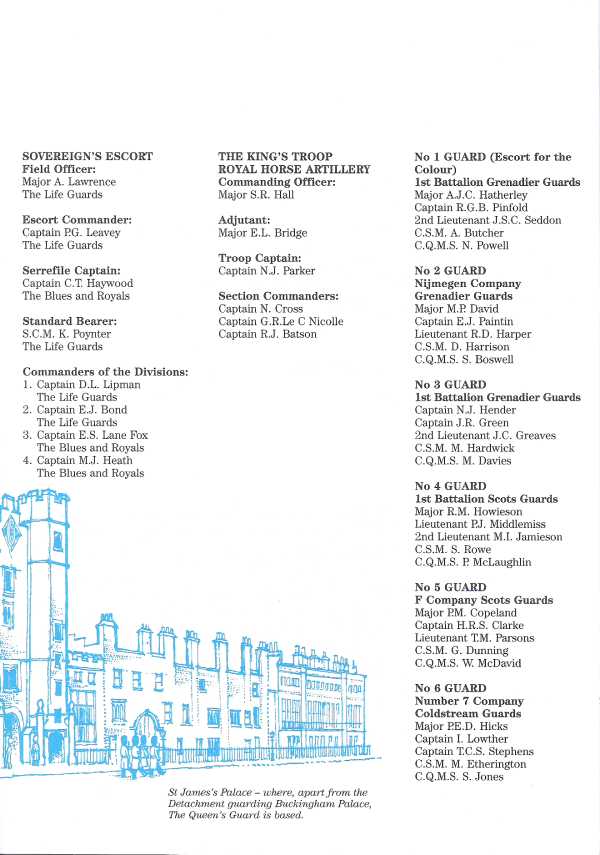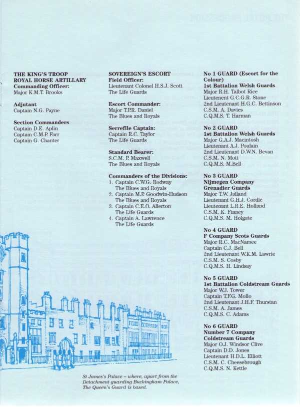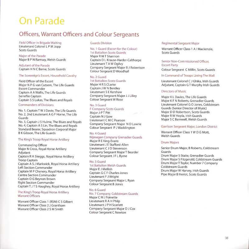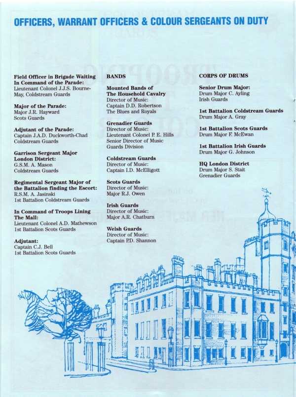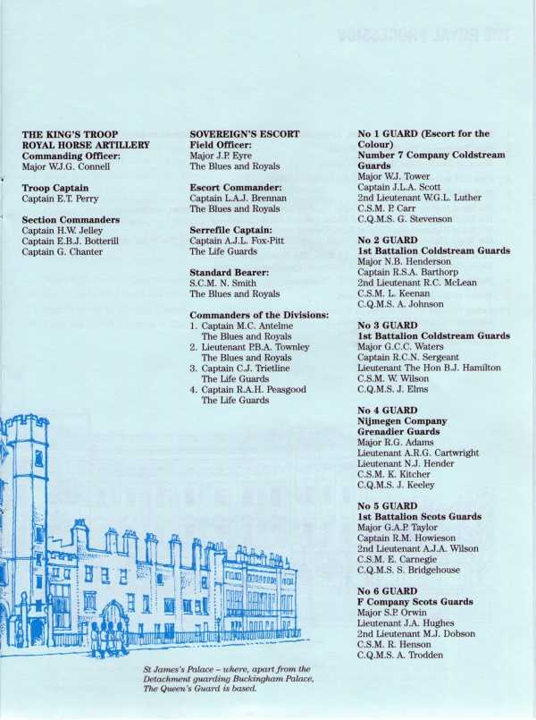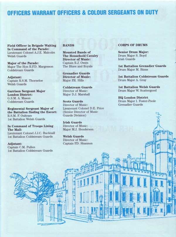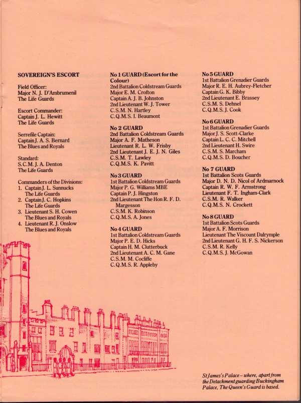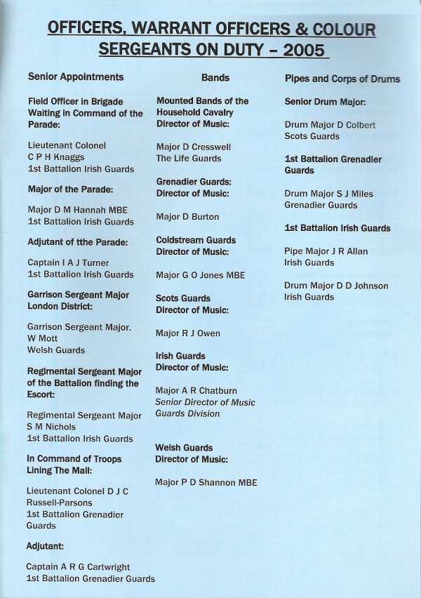 from the Sovereign's Birthday Parades compiled by Colin Dean.