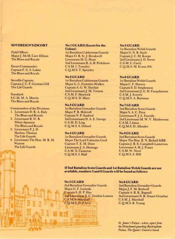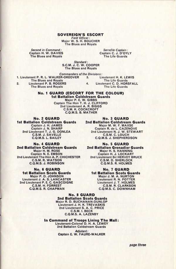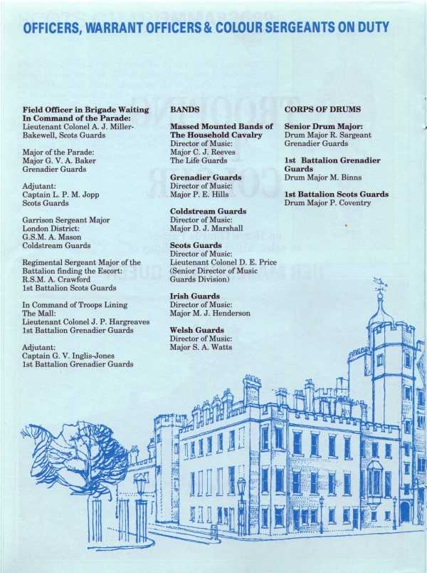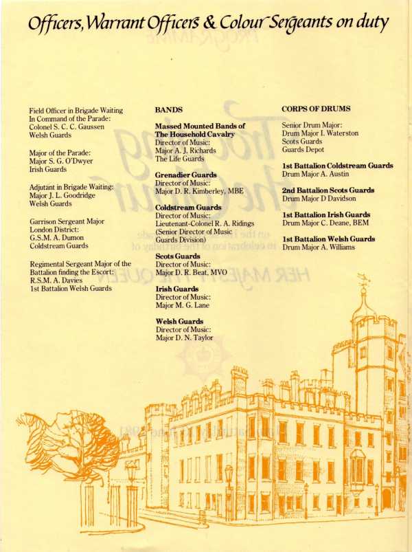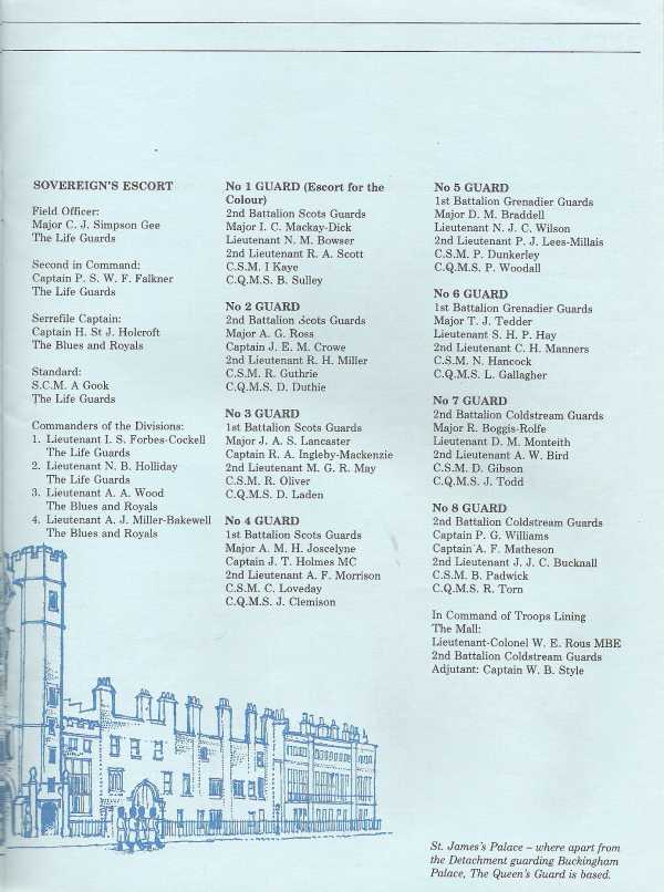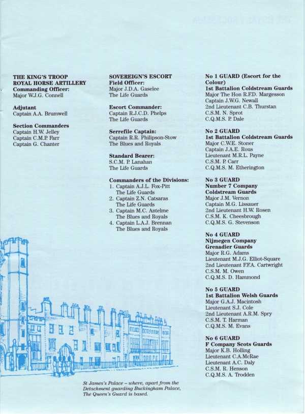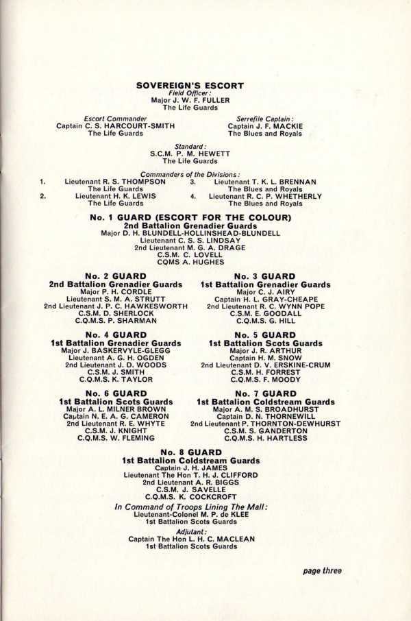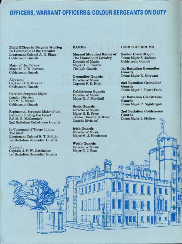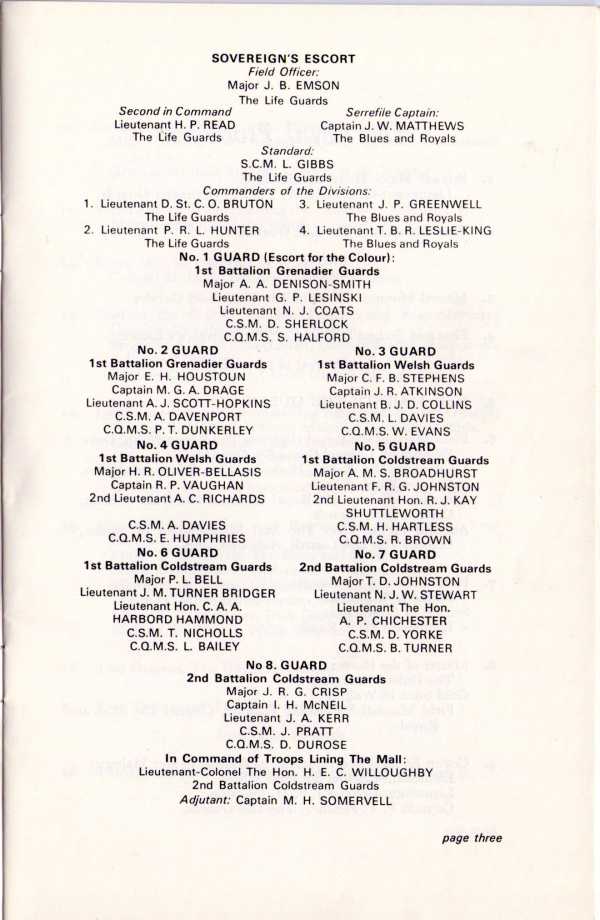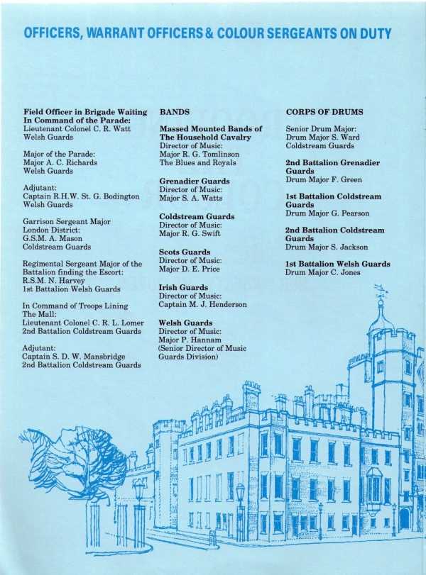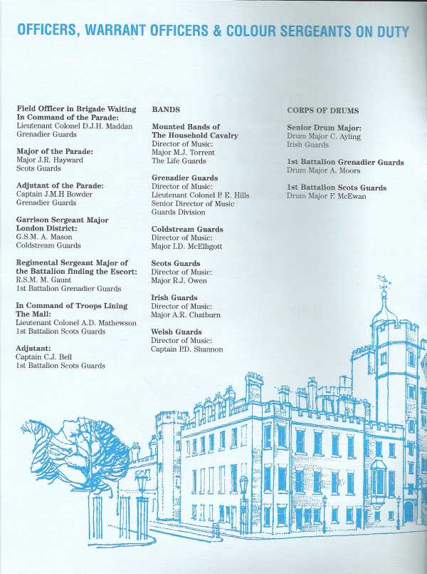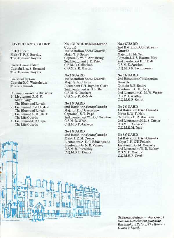 from the Sovereign's Birthday Parades compiled by Colin Dean.