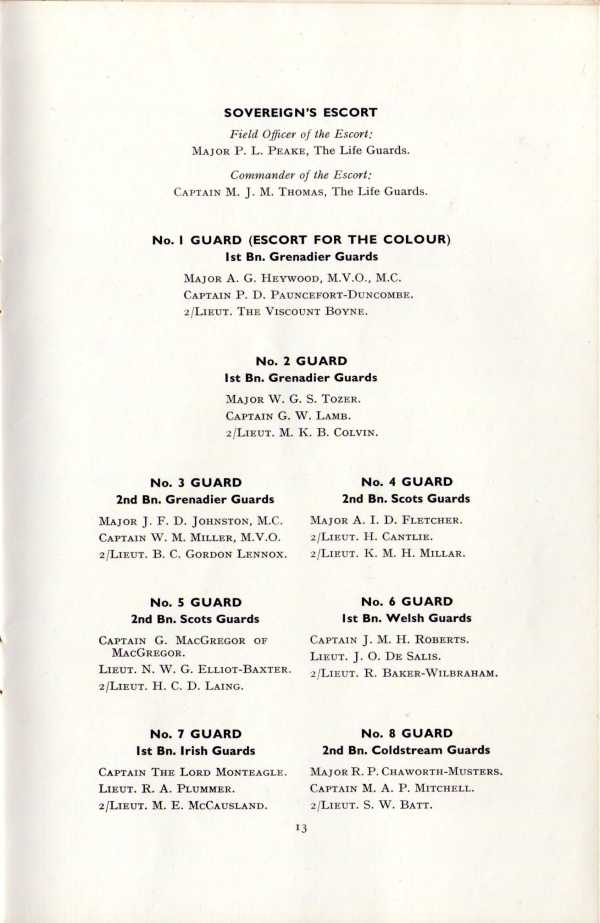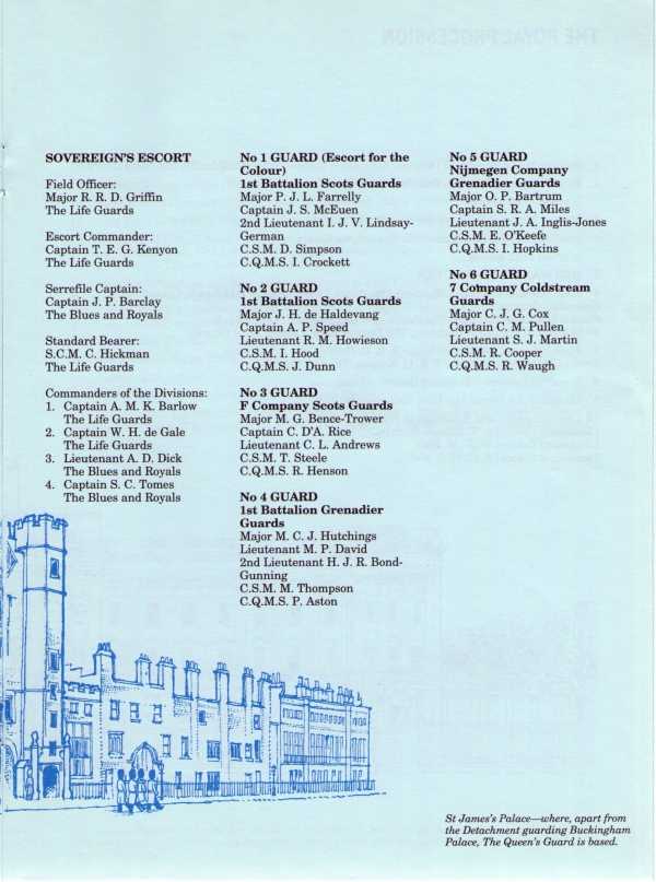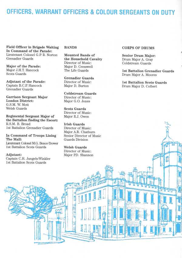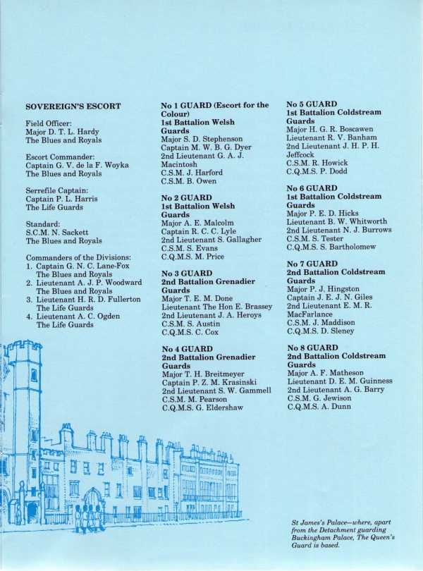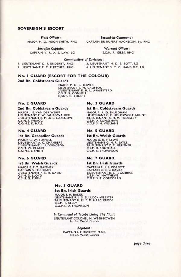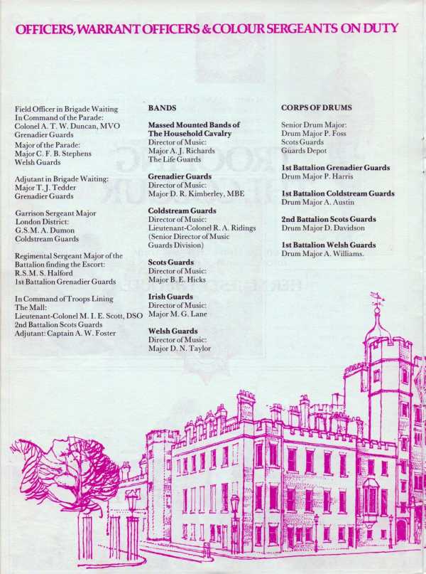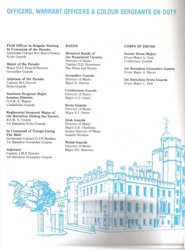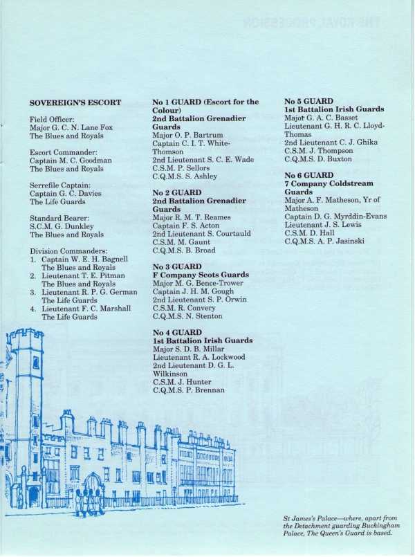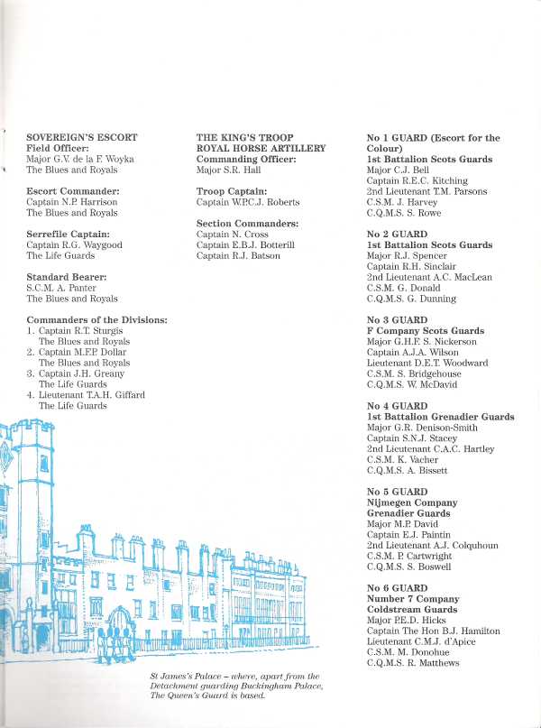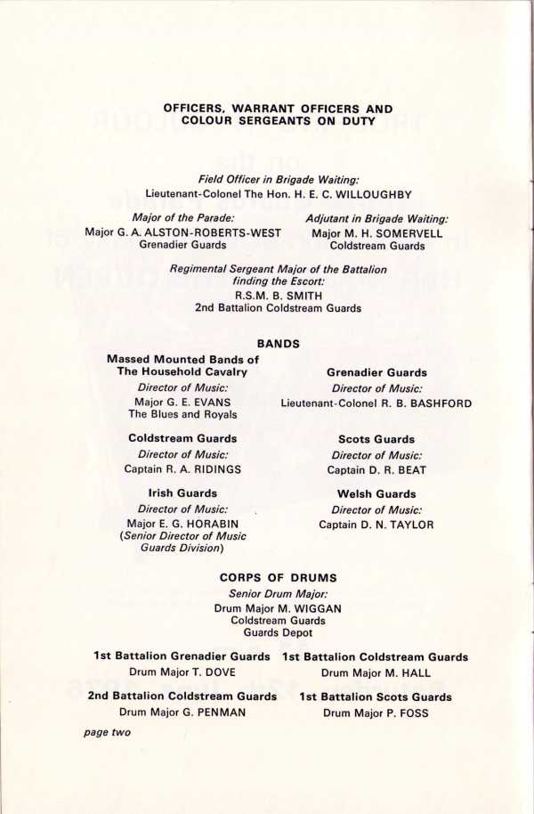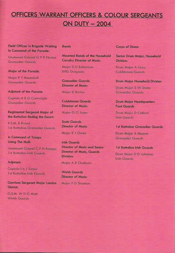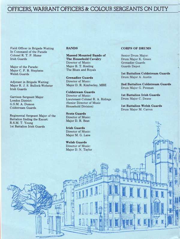 from the Sovereign's Birthday Parades compiled by Colin Dean.