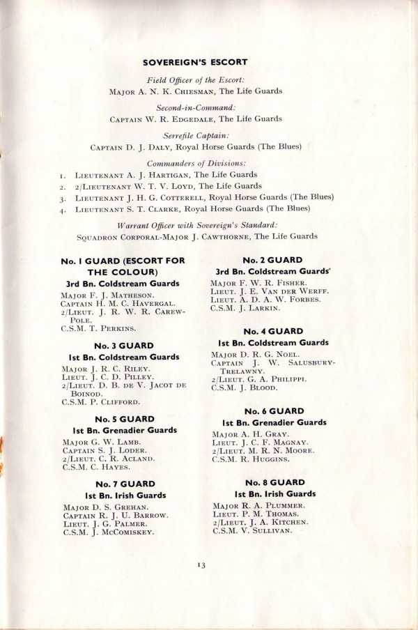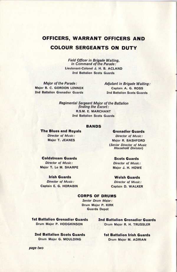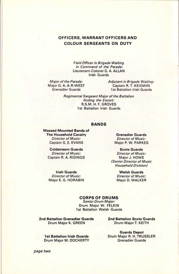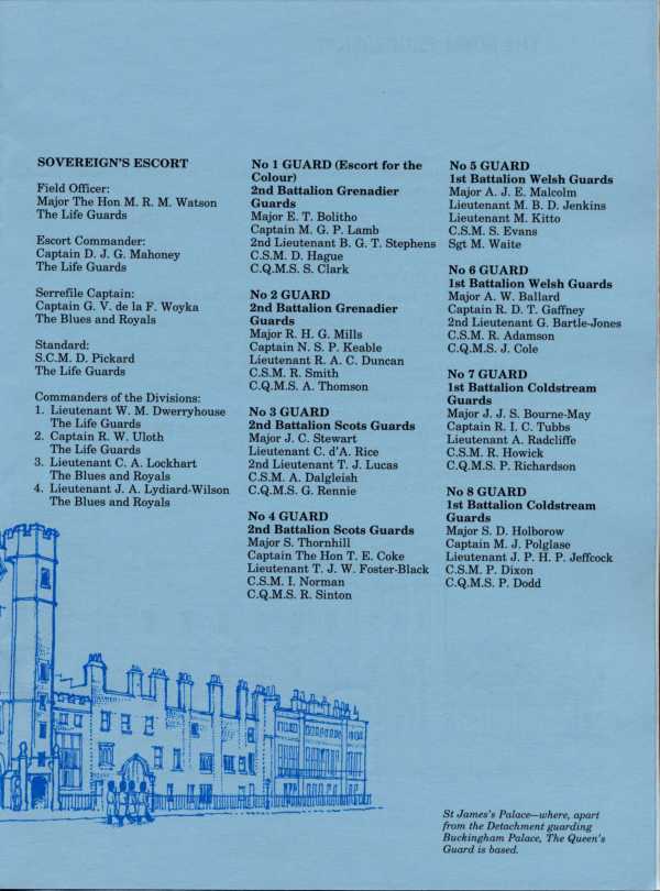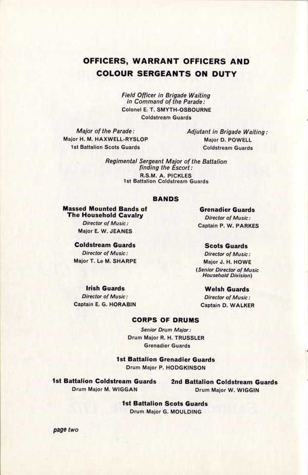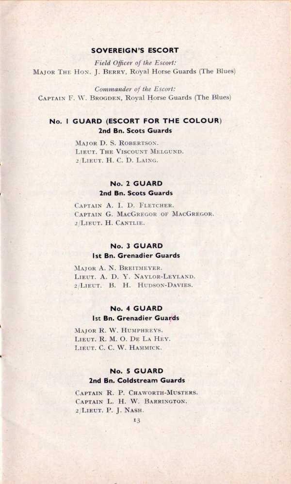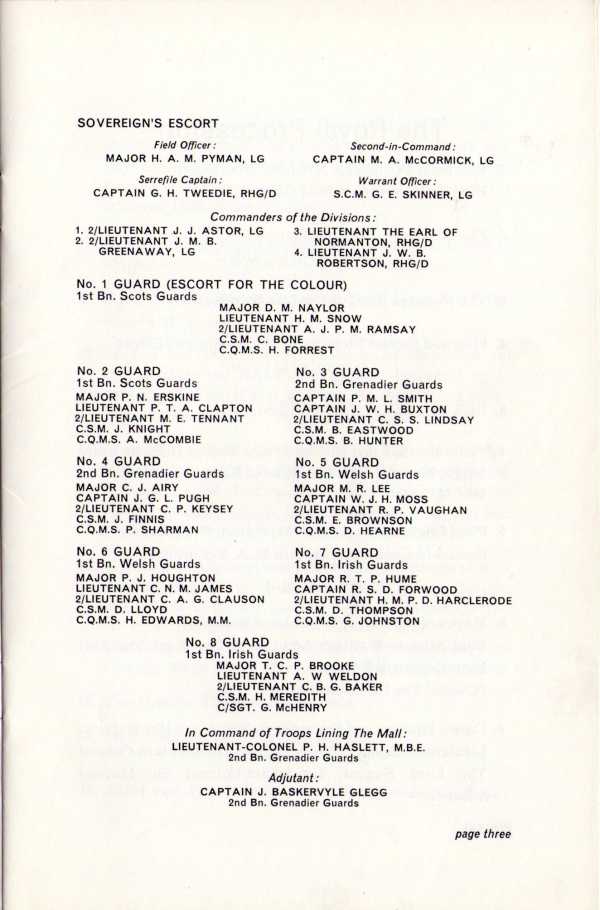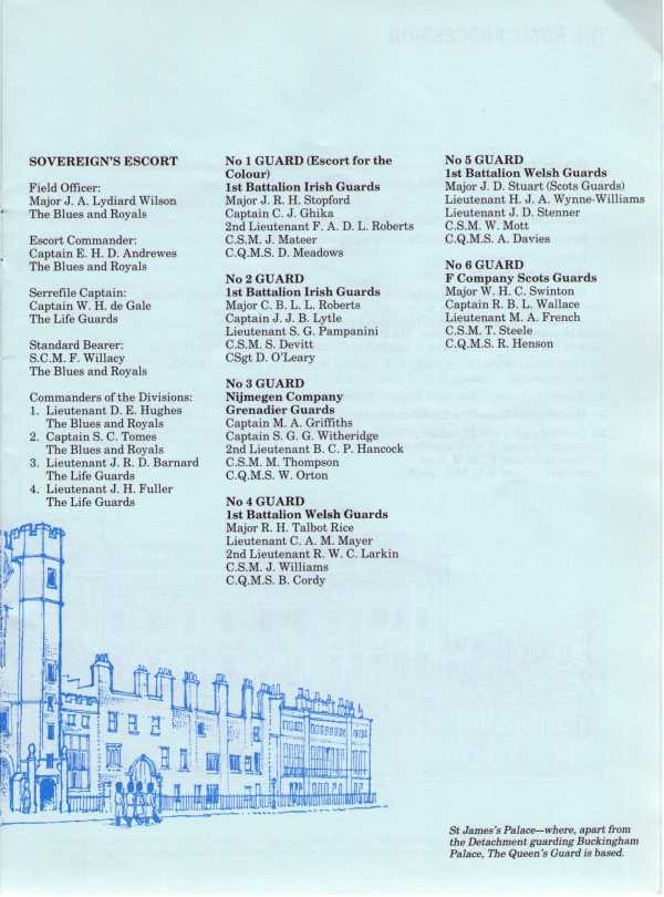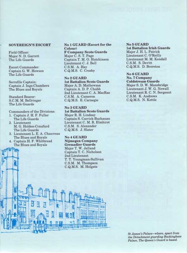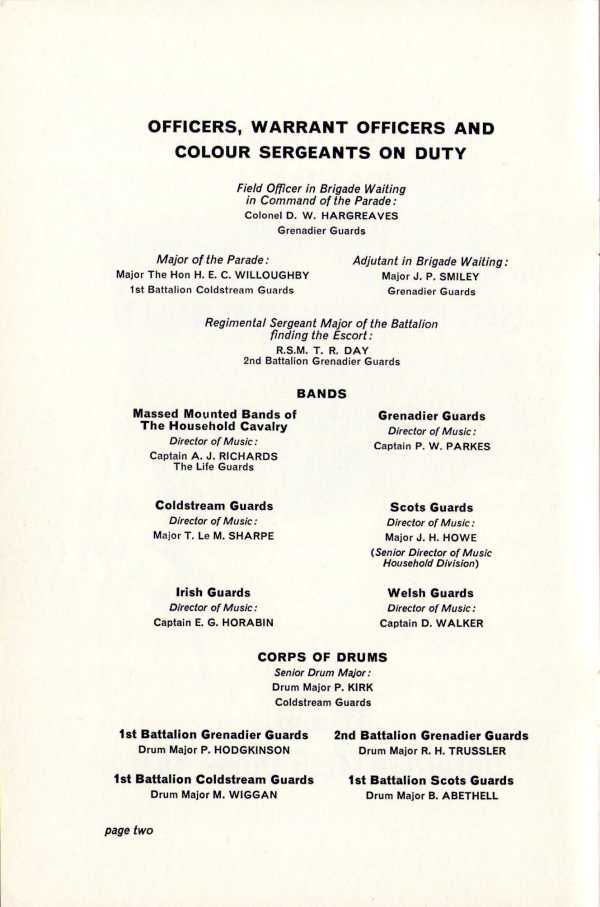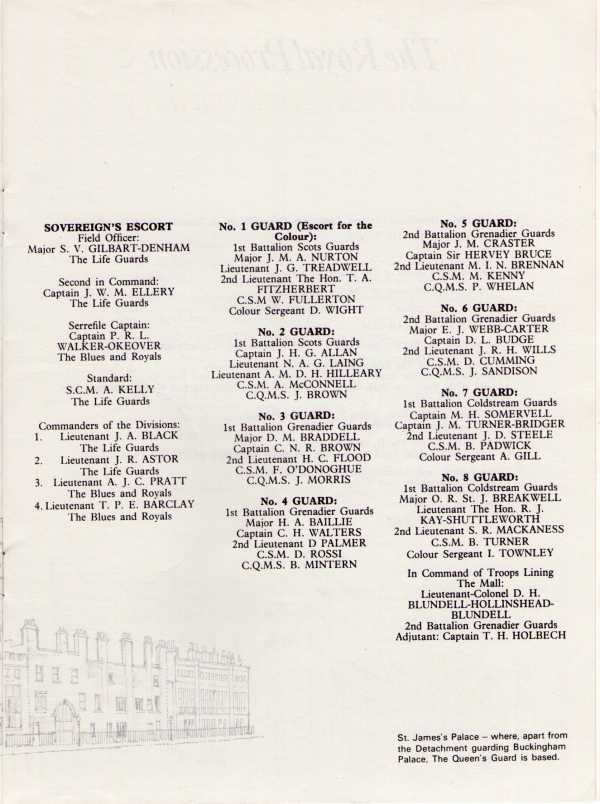 from the Sovereign's Birthday Parades compiled by Colin Dean.