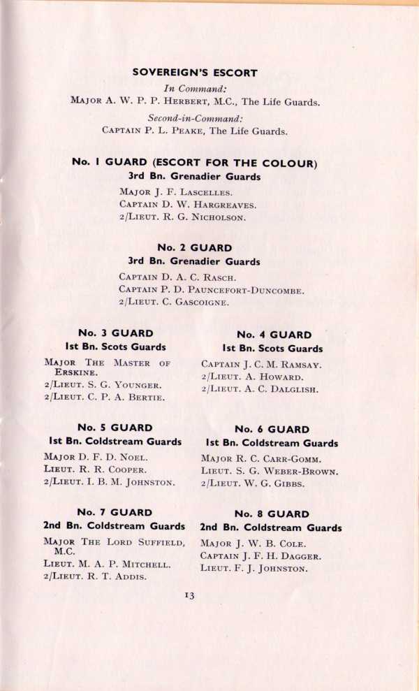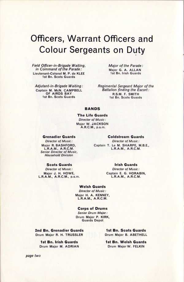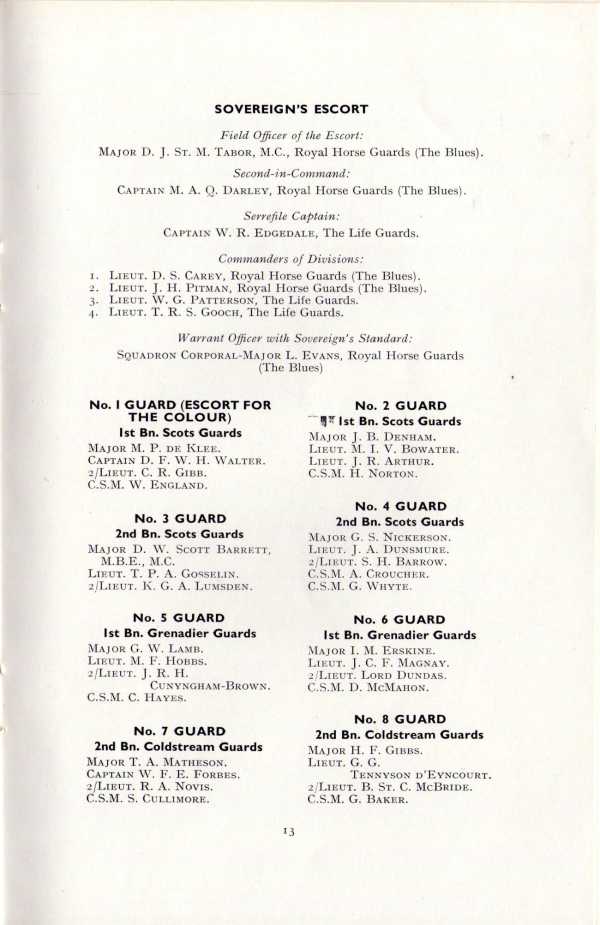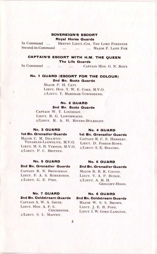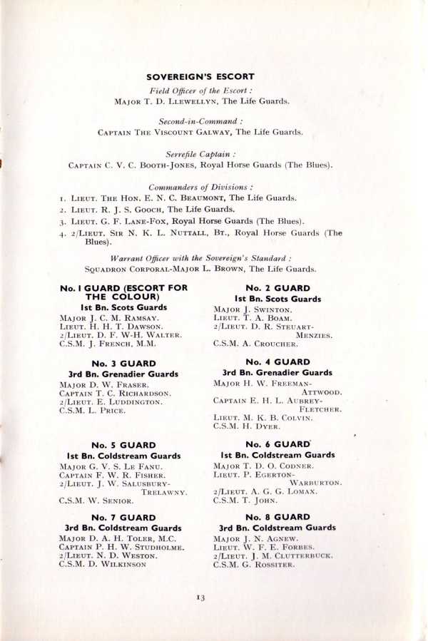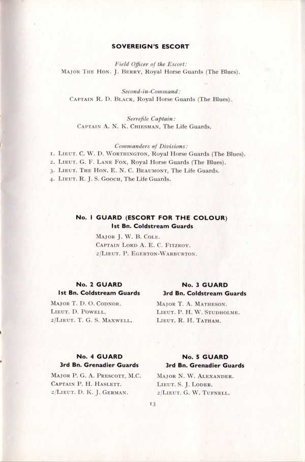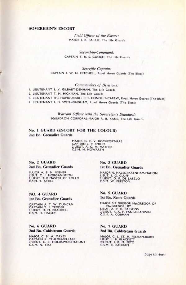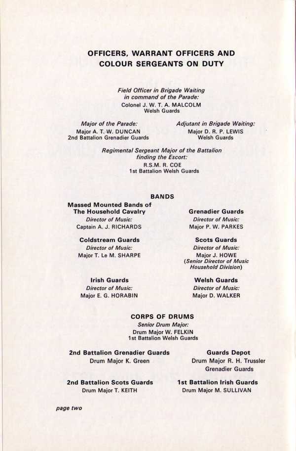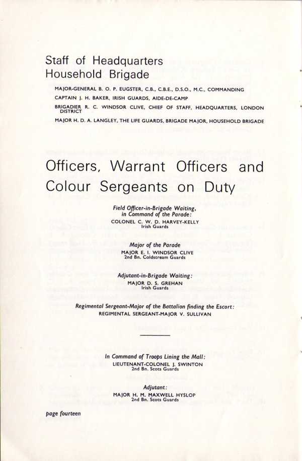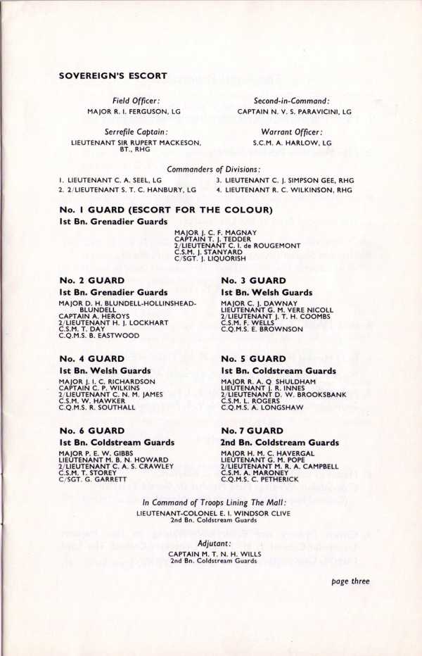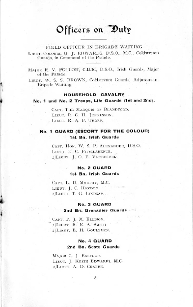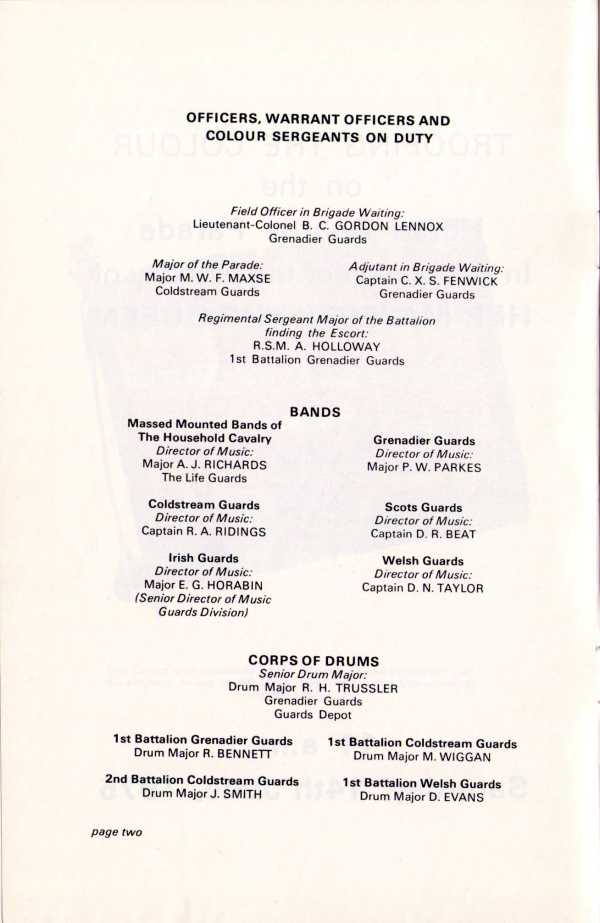 from the Sovereign's Birthday Parades compiled by Colin Dean.