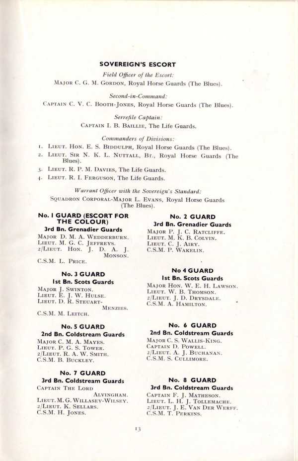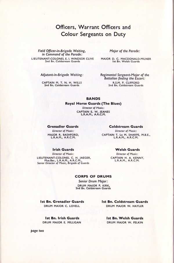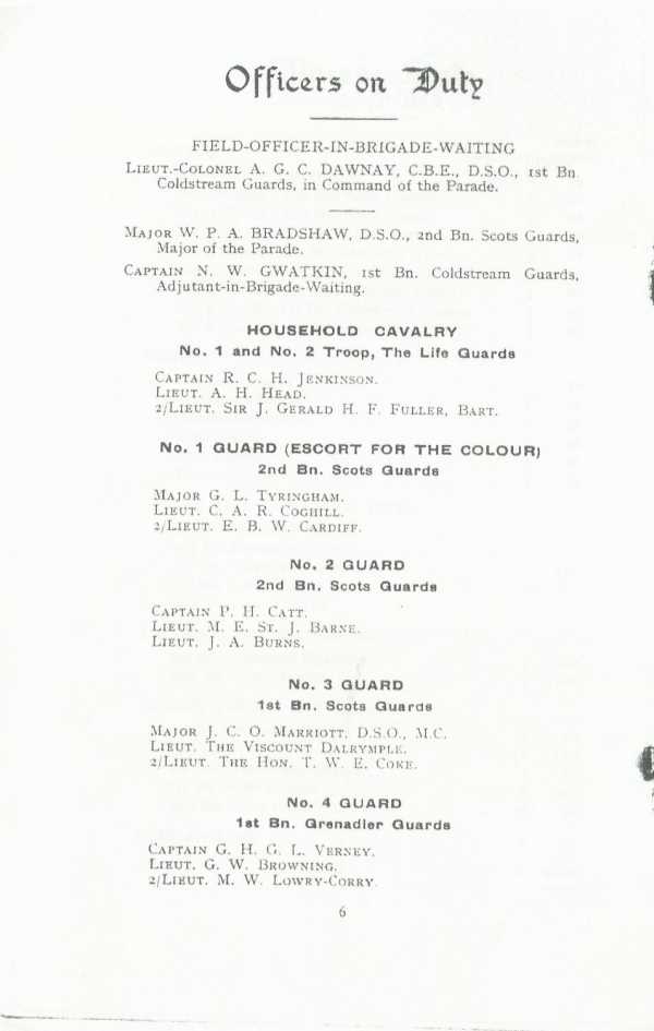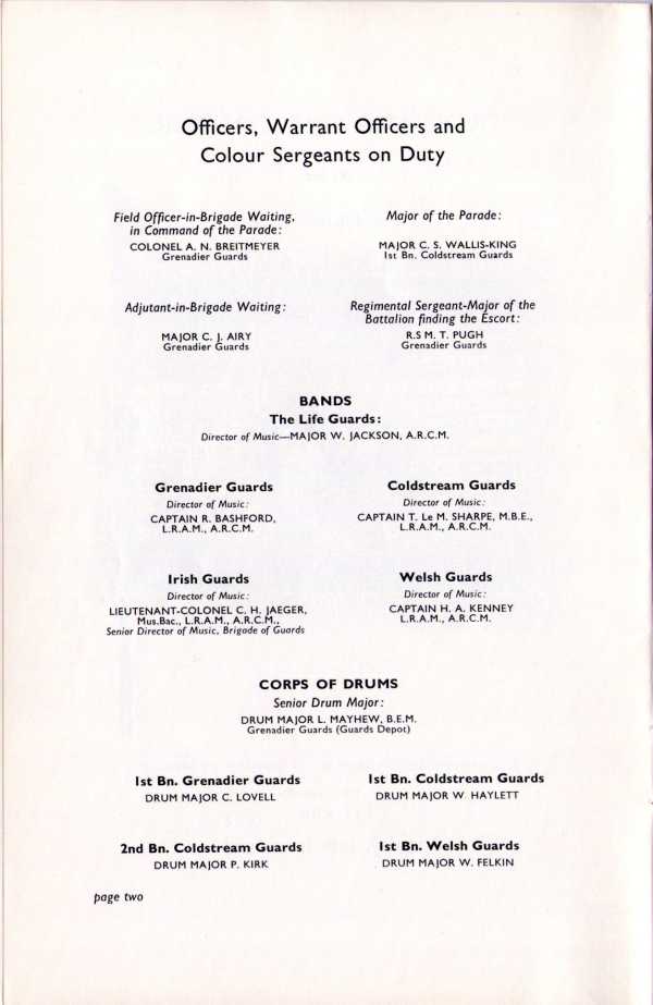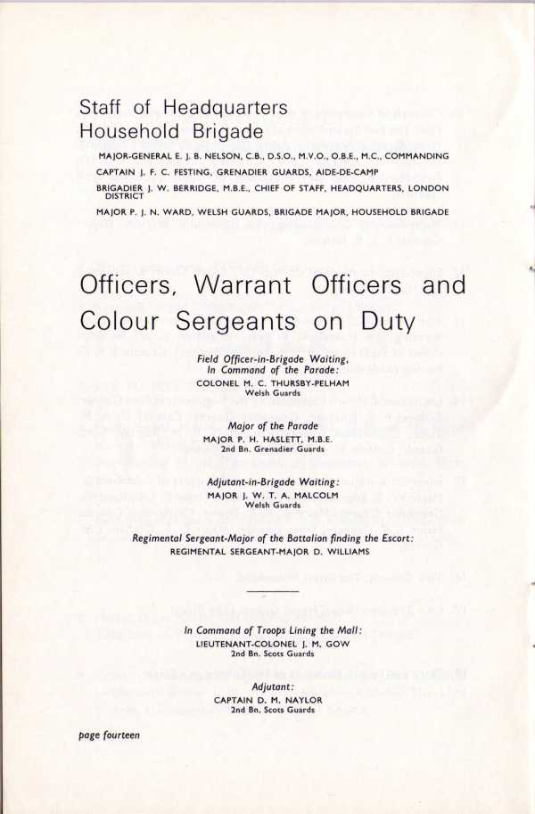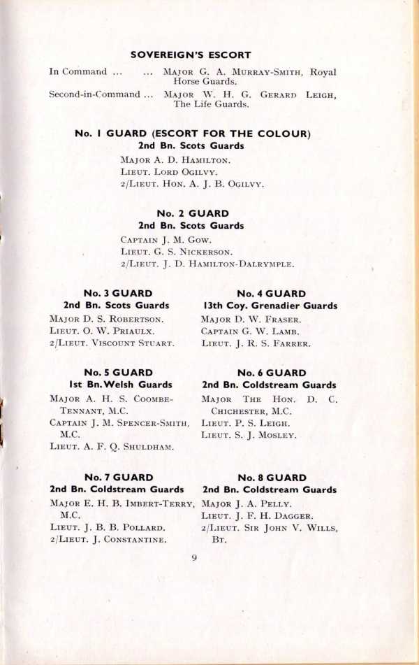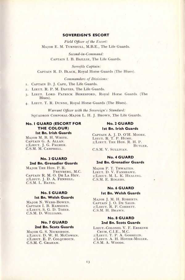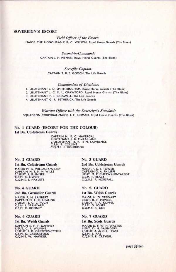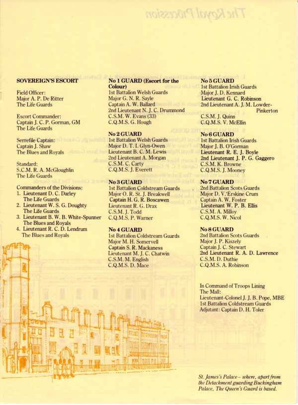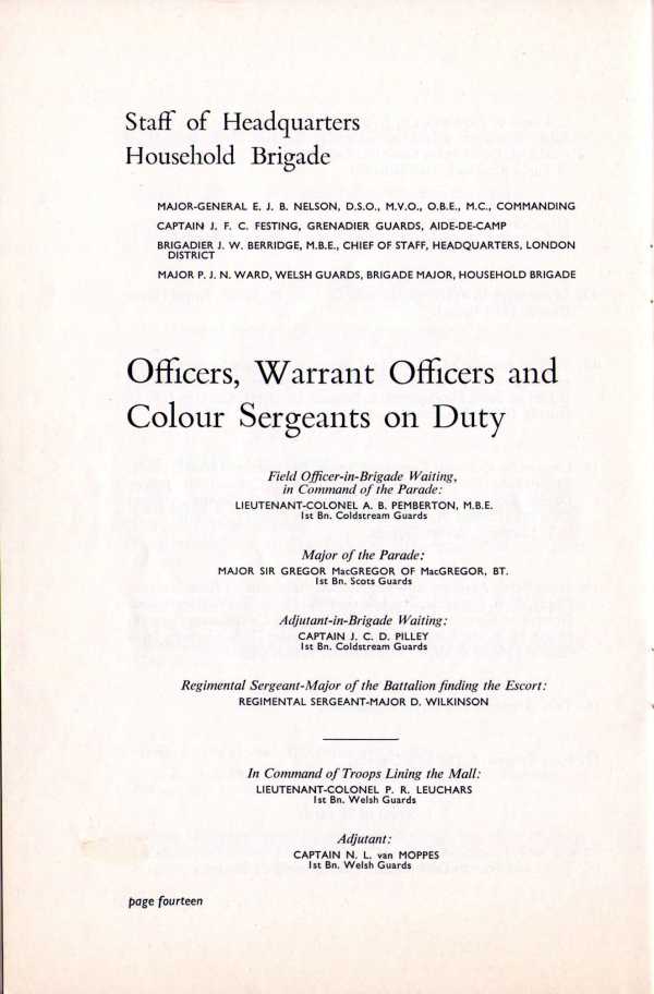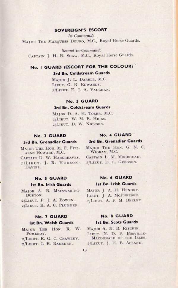 from the Sovereign's Birthday Parades compiled by Colin Dean.