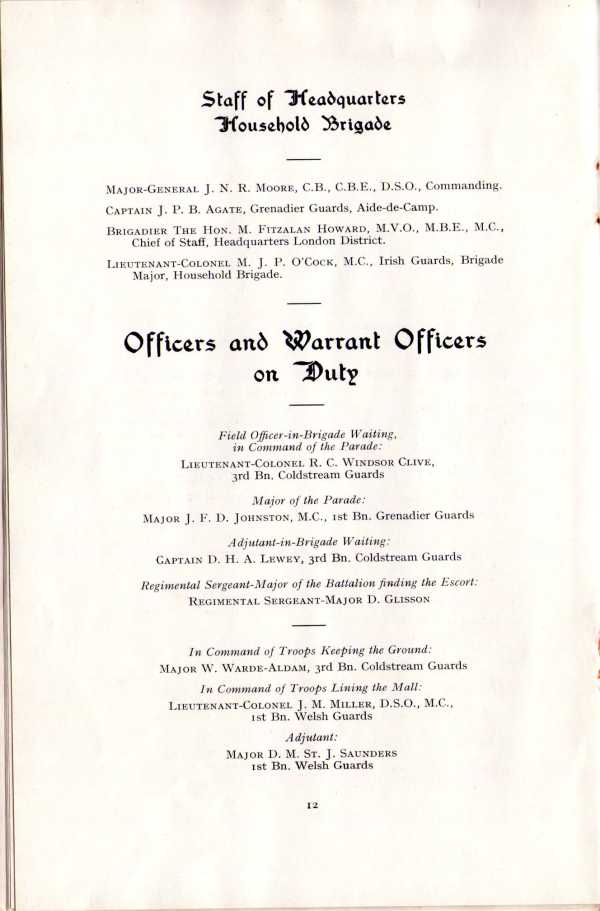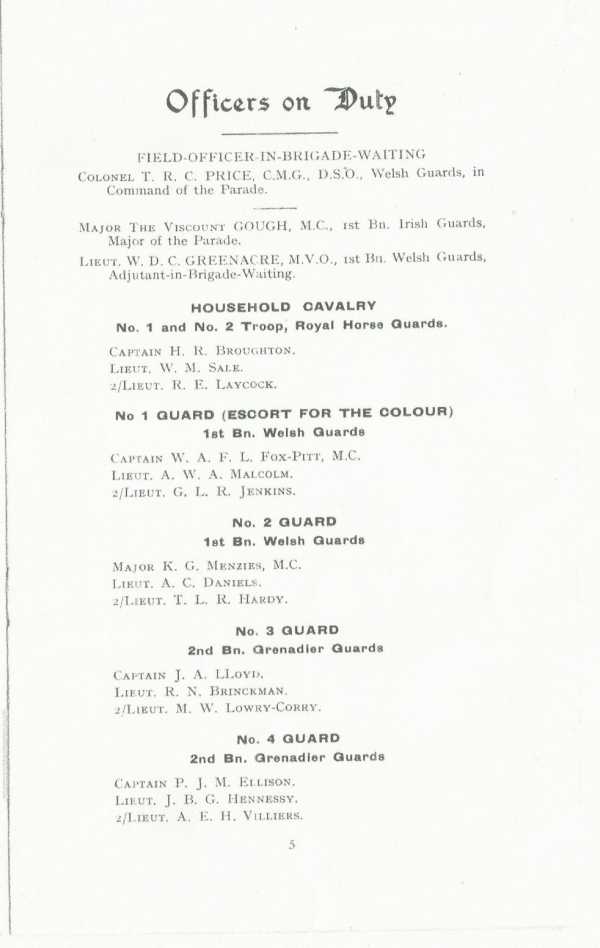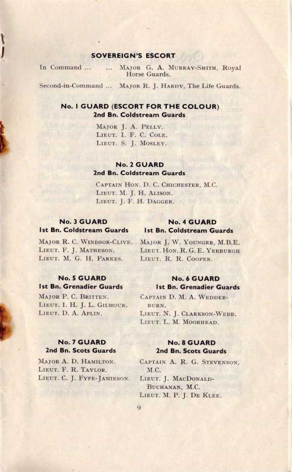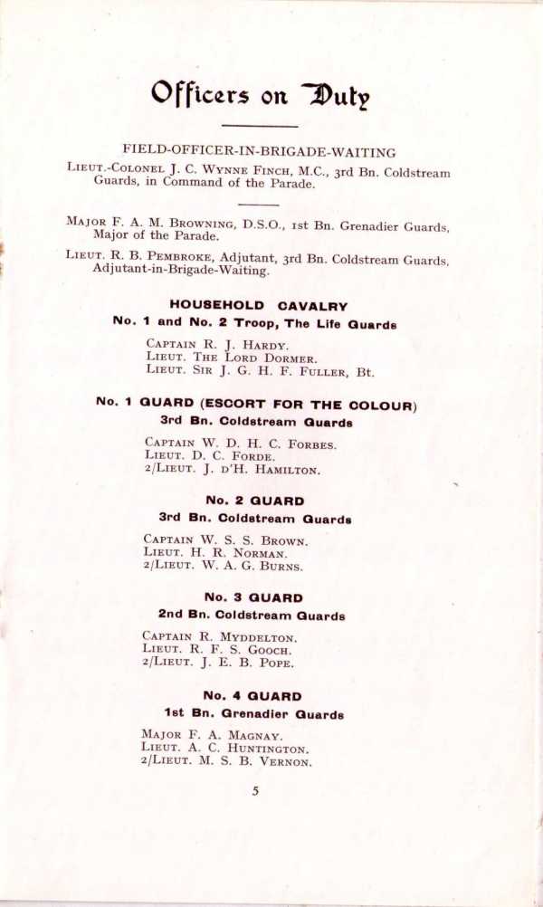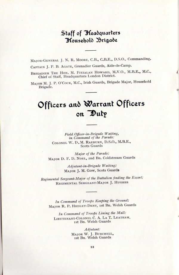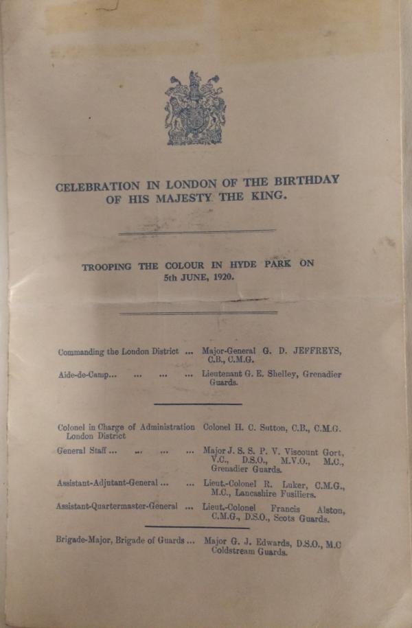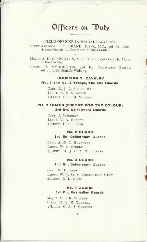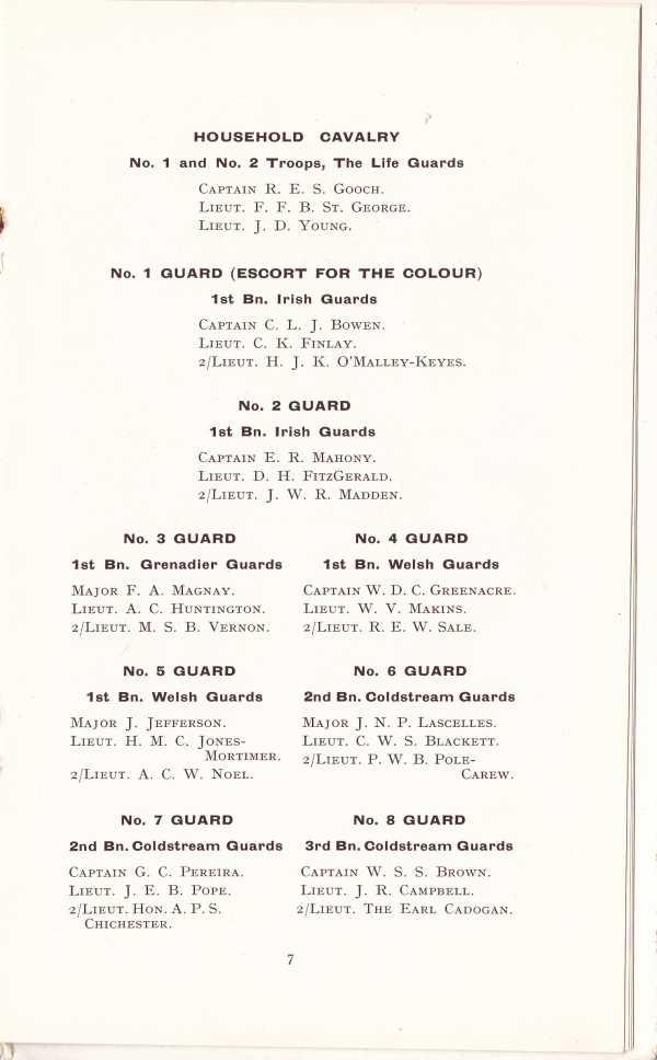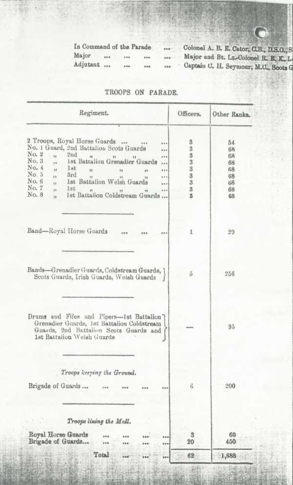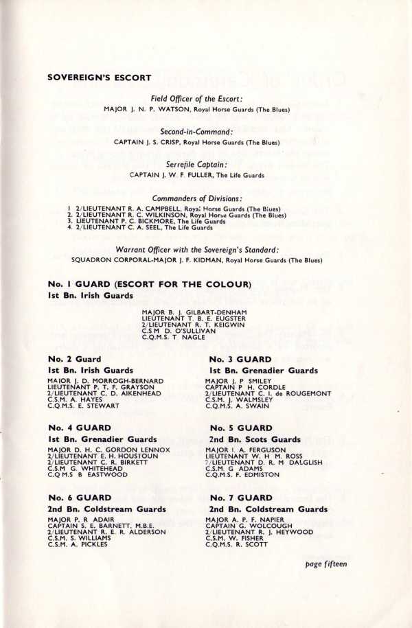 from the Sovereign's Birthday Parades compiled by Colin Dean.