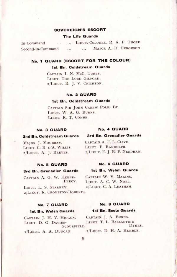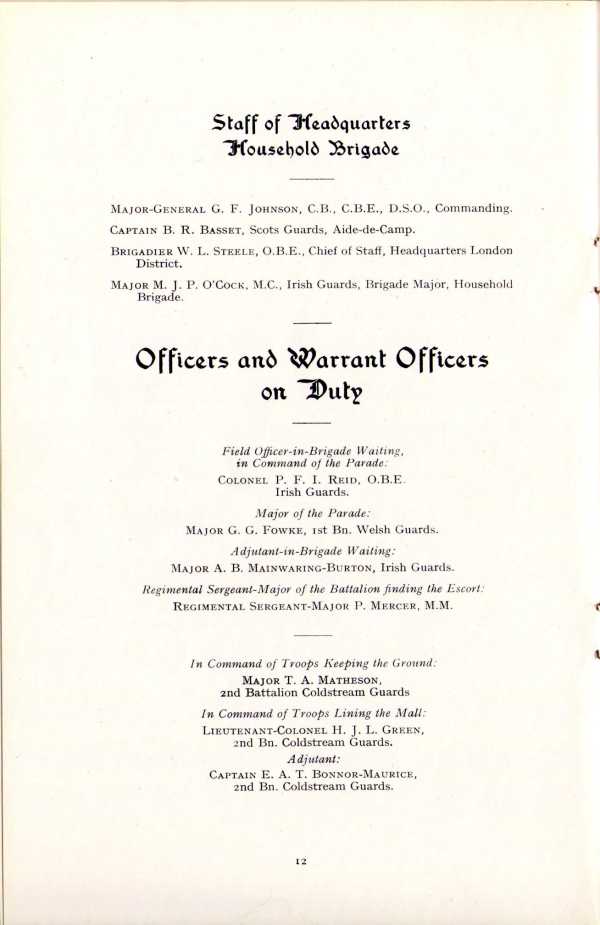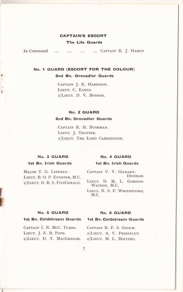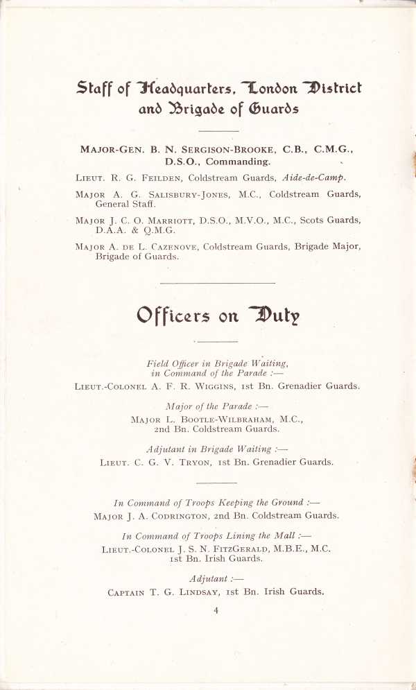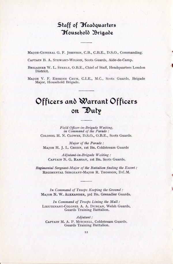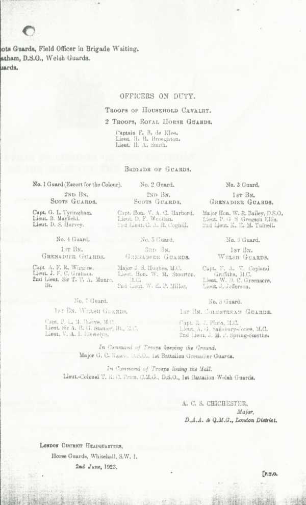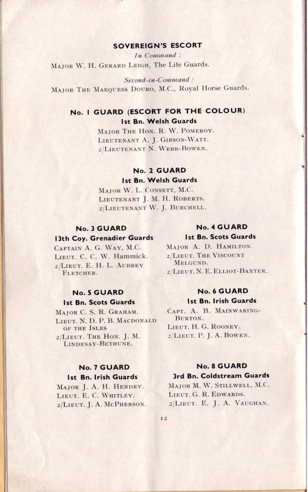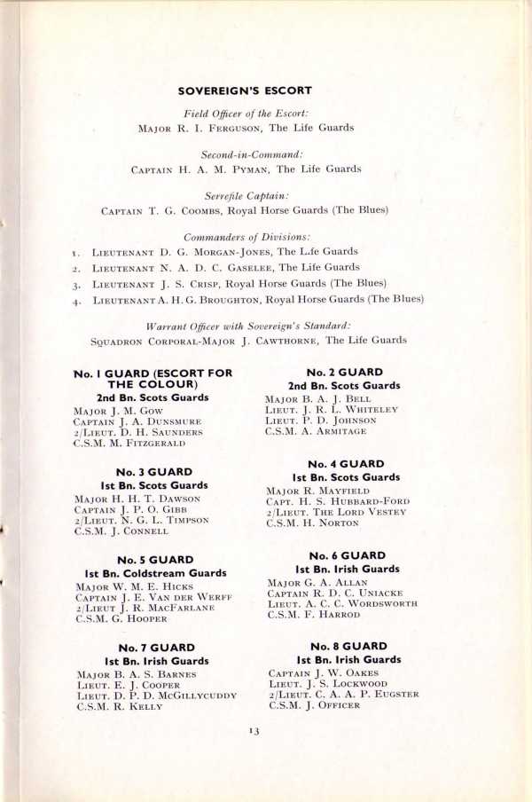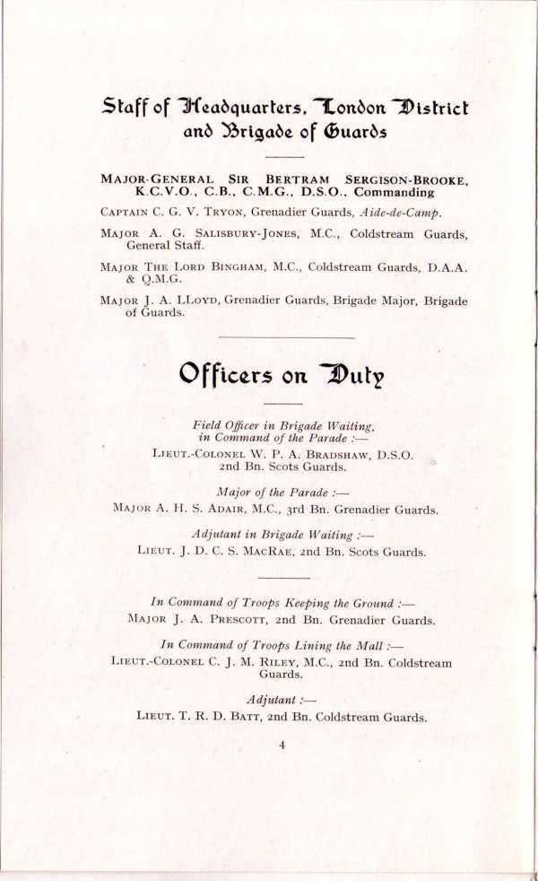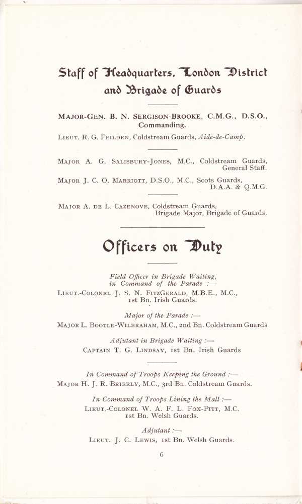 from the Sovereign's Birthday Parades compiled by Colin Dean.