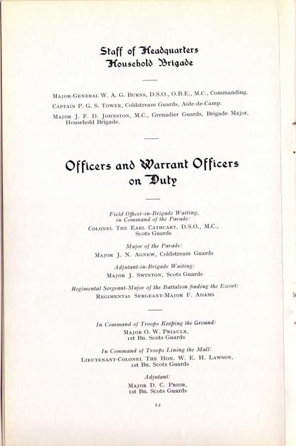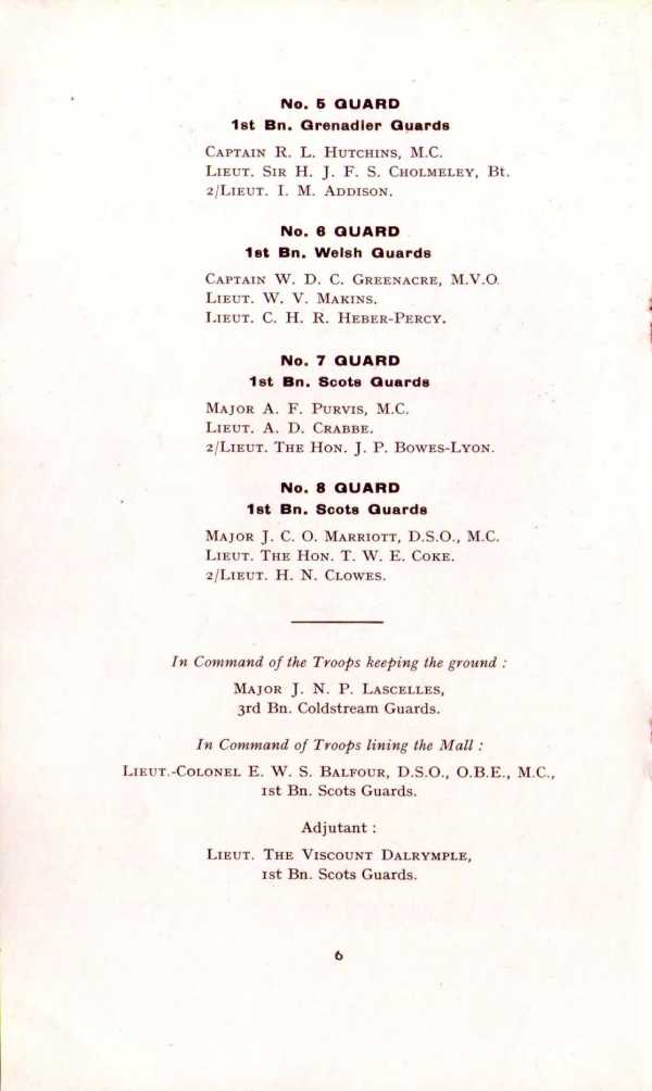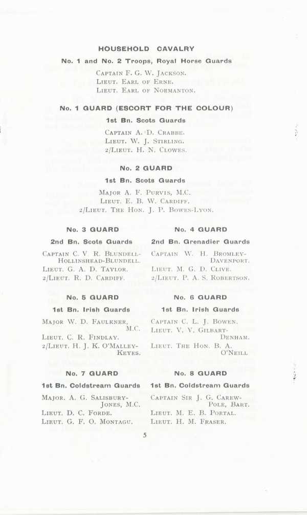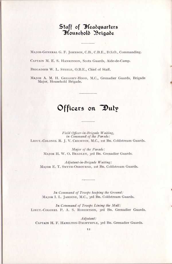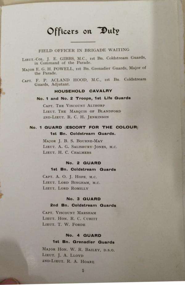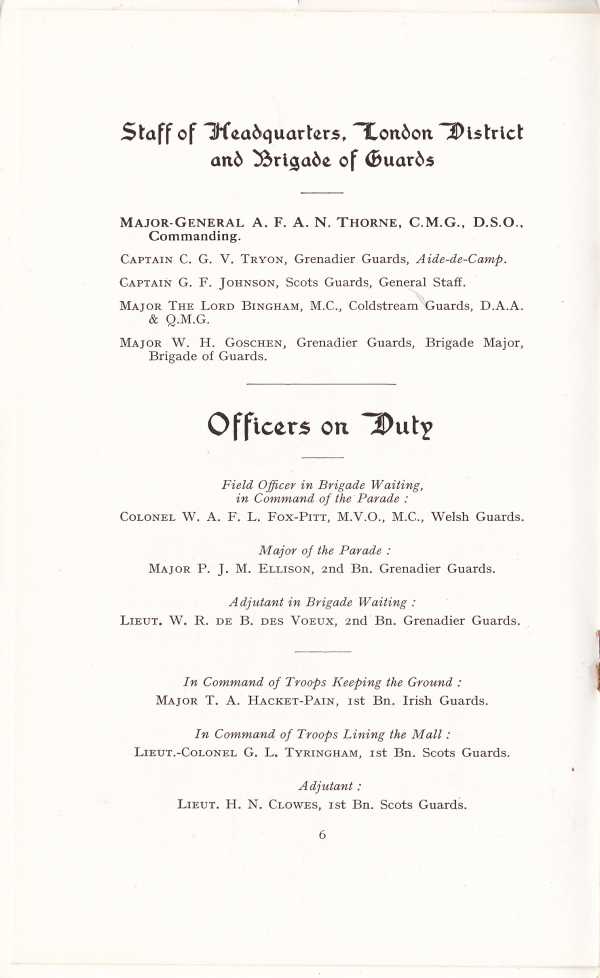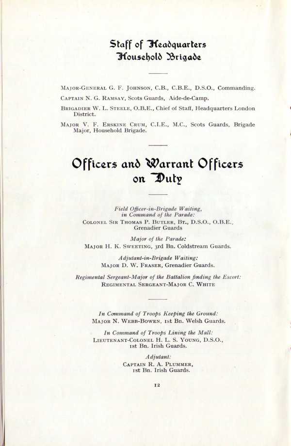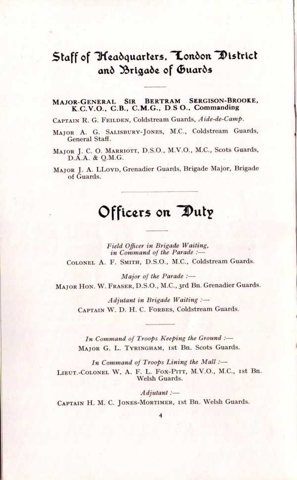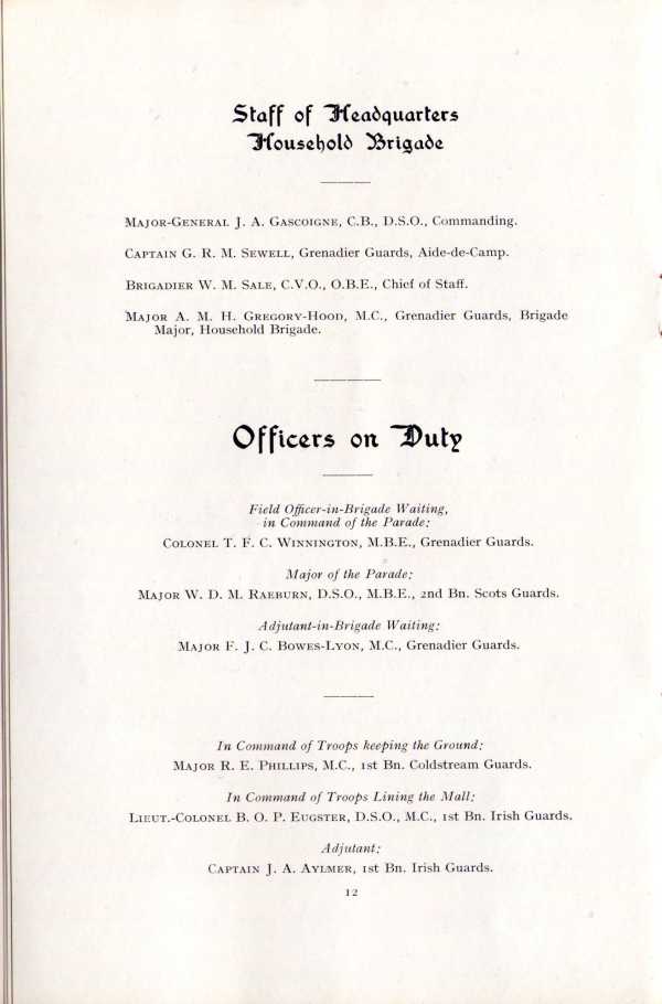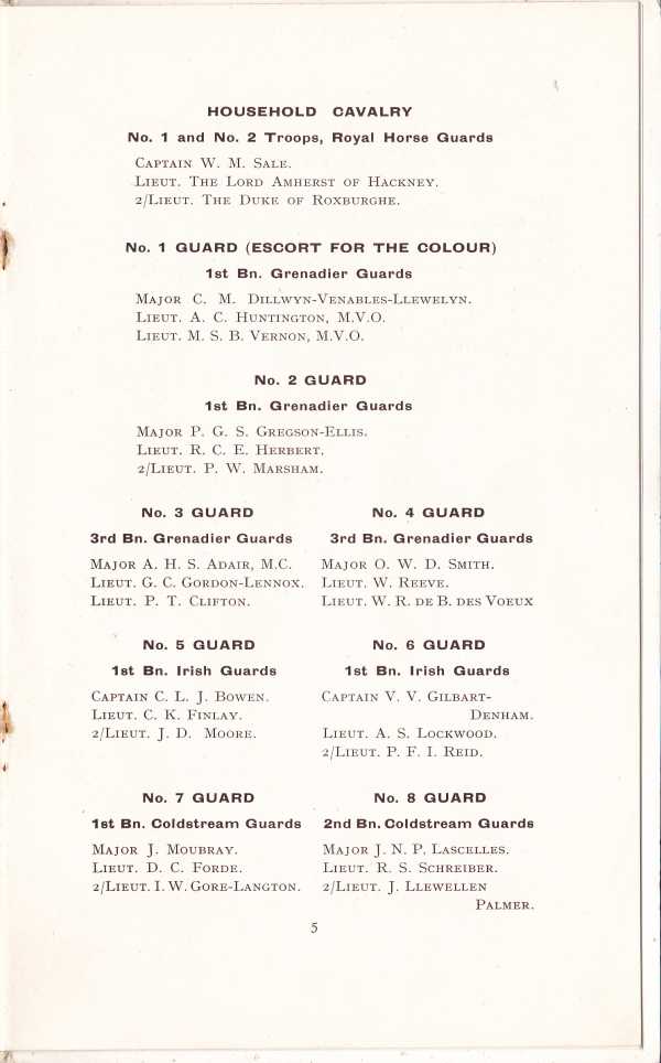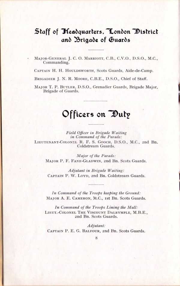 from the Sovereign's Birthday Parades compiled by Colin Dean.