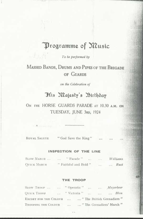 ![]() This webpage is dedicated to the memory of Vic Lowe who provided most of the images of historic programme covers and contents featured above, was a collector of Trooping the Colour memorabilia and became a dear friend. (R.I.P. July 2014) |